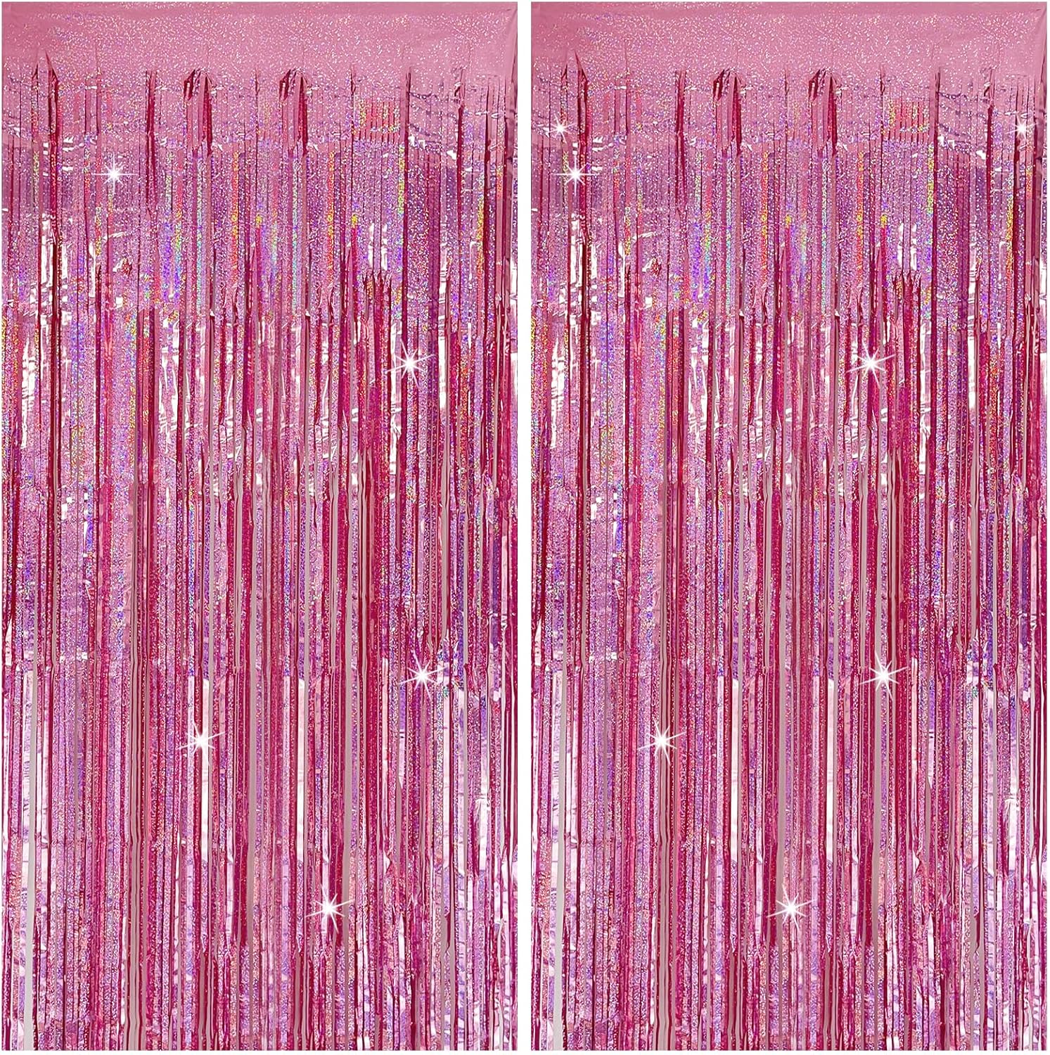 - Tinsel Curtain Party Backdrop: 2Packs/Set, each pack curtains size is 3.28 ft x 6.56 ft, enough length for decorate your party. Perfect accessories for decorating doors and walls to create an impressive decoration for parties, events, and photo booths.