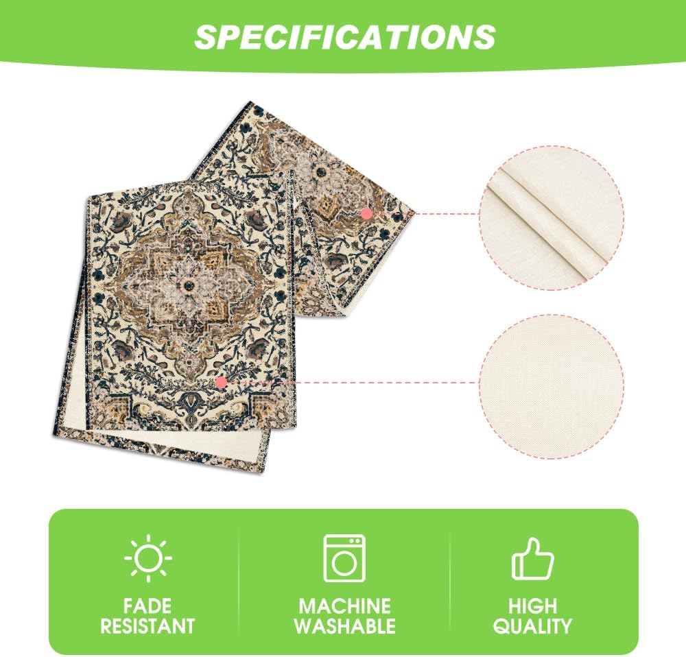 - Easy to Clean : Machine wash and lay the table runner flat to dry. Stays the same and as new after every wash. Material: 100% Polyester, no shrink, no fading. Imported, Country of origin: China