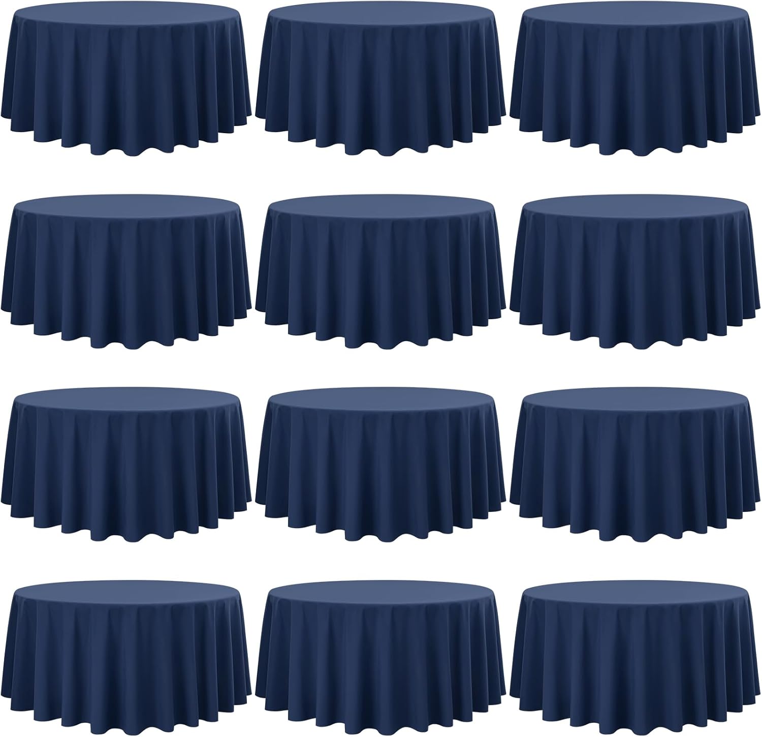- đ„ăPremium Tablecloth FabricsăYou can get 12 pieces 108 inch Navy Blue round tablecloth, our tablecloth is made of soft premium polyester fabric that resists wrinkling for an always crisp, polished look. These materials are as skin-friendly as they are environmentally friendly. Protect and decorate your tables.