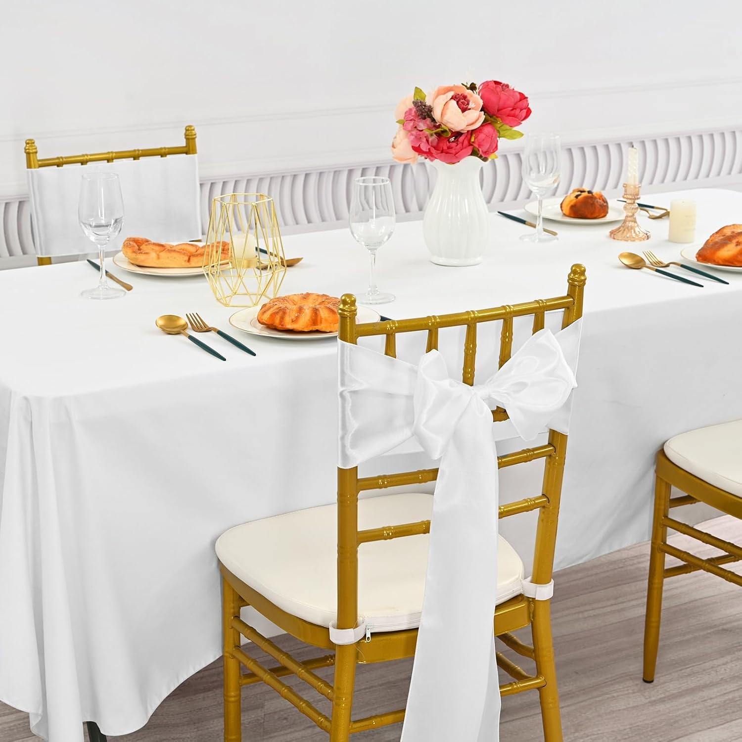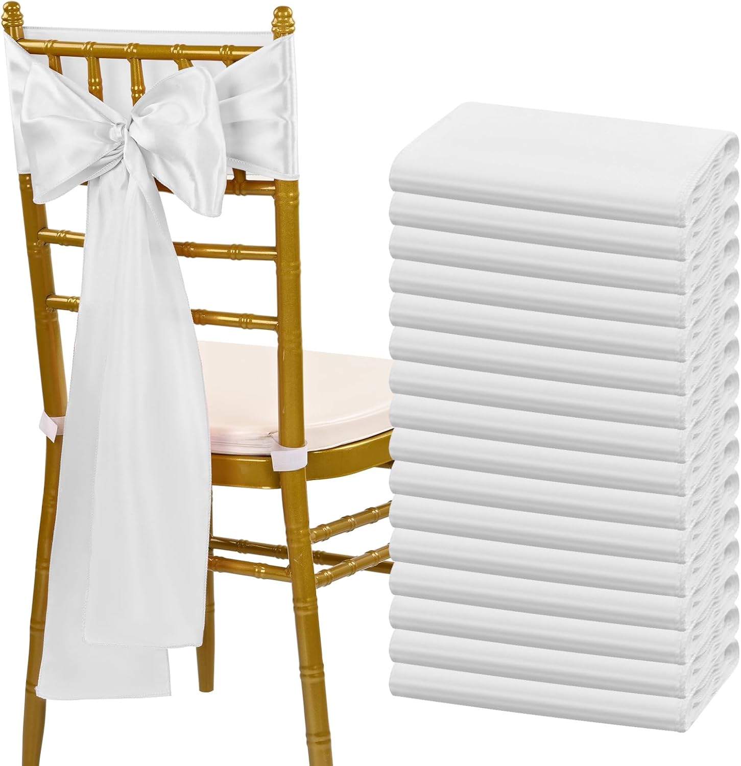 fani 60 PCS White Satin Chair Sashes Bows Universal Chair Cover for Wedding Reception Restaurant Event Decoration Banquet,Party,Hotel Event Decorations (7 x 108 inch)