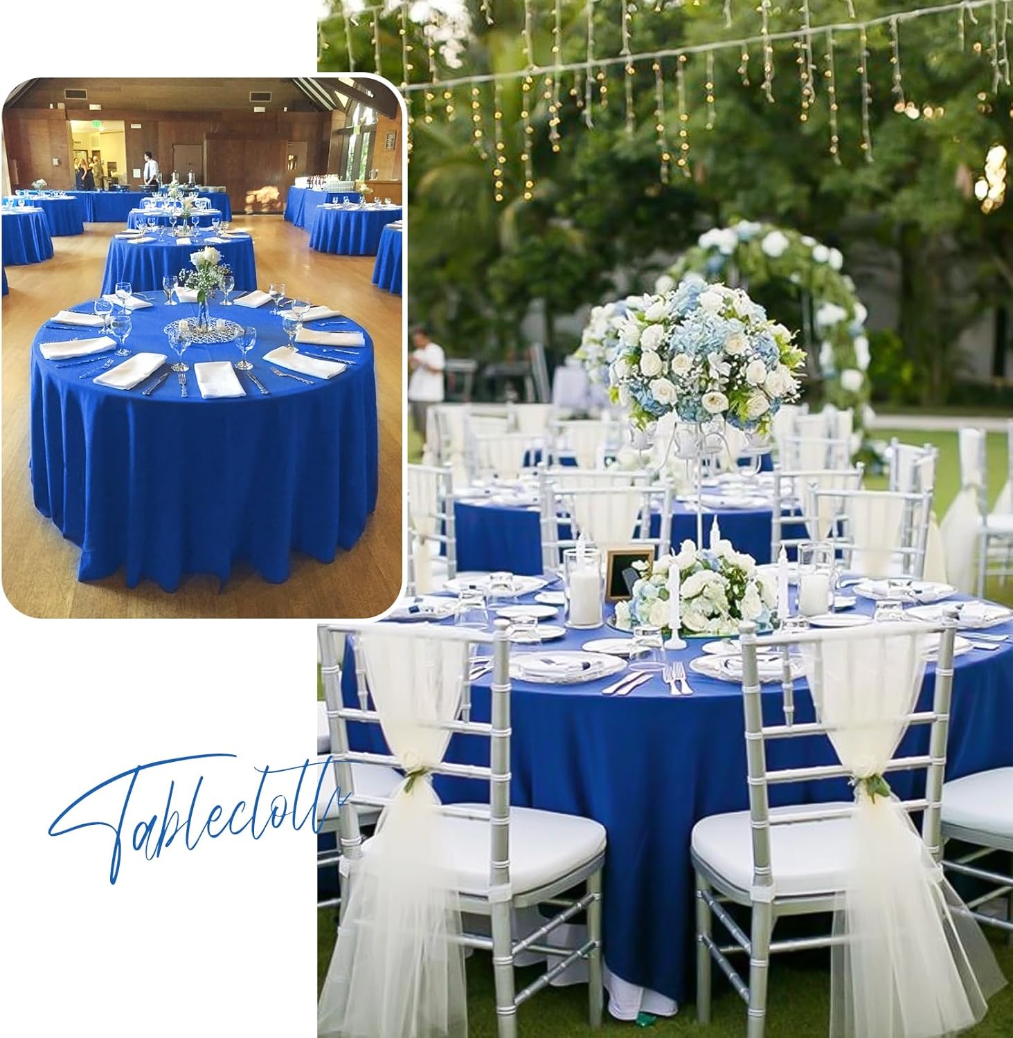 Fani 12 Pack 90 Inch Royal Blue Polyester Round Tablecloth, Stain and Wrinkle Resistant, Washable Table Cover for Wedding Party, Dining Table, Buffet, Parties, Camping