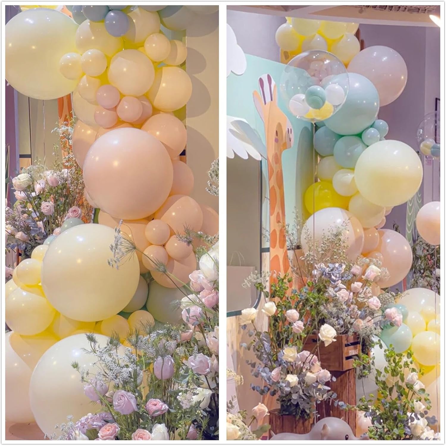 - PASTEL ORANGE BALLOON ARCH GARLAND KIT: Includes 412 Pastel Orange Balloons, 18inch 12pcs, 12inch 100pcs, 10inch 100pcs, 5inch 200pcs , 2 rolls of Balloon glue point(200pcs), 2 rolls of balloon decoration strip(32.8 feet / 5m*2 with 220 holes), 2 roll of ribbon. plenty in quantity, perfect for making indoor or outdoor them decoration.