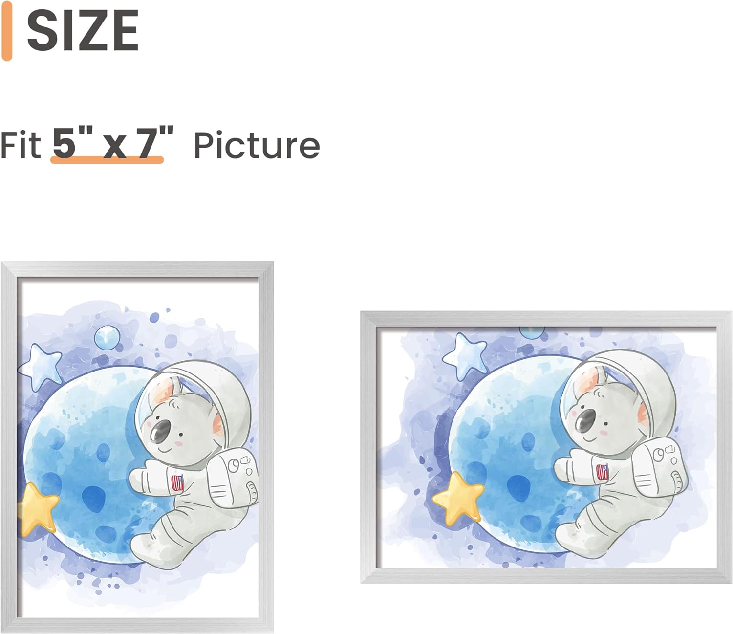 - Size: One wall silver photo frame fits 5x7 photo without mat, can be hung horizontally or vertically.