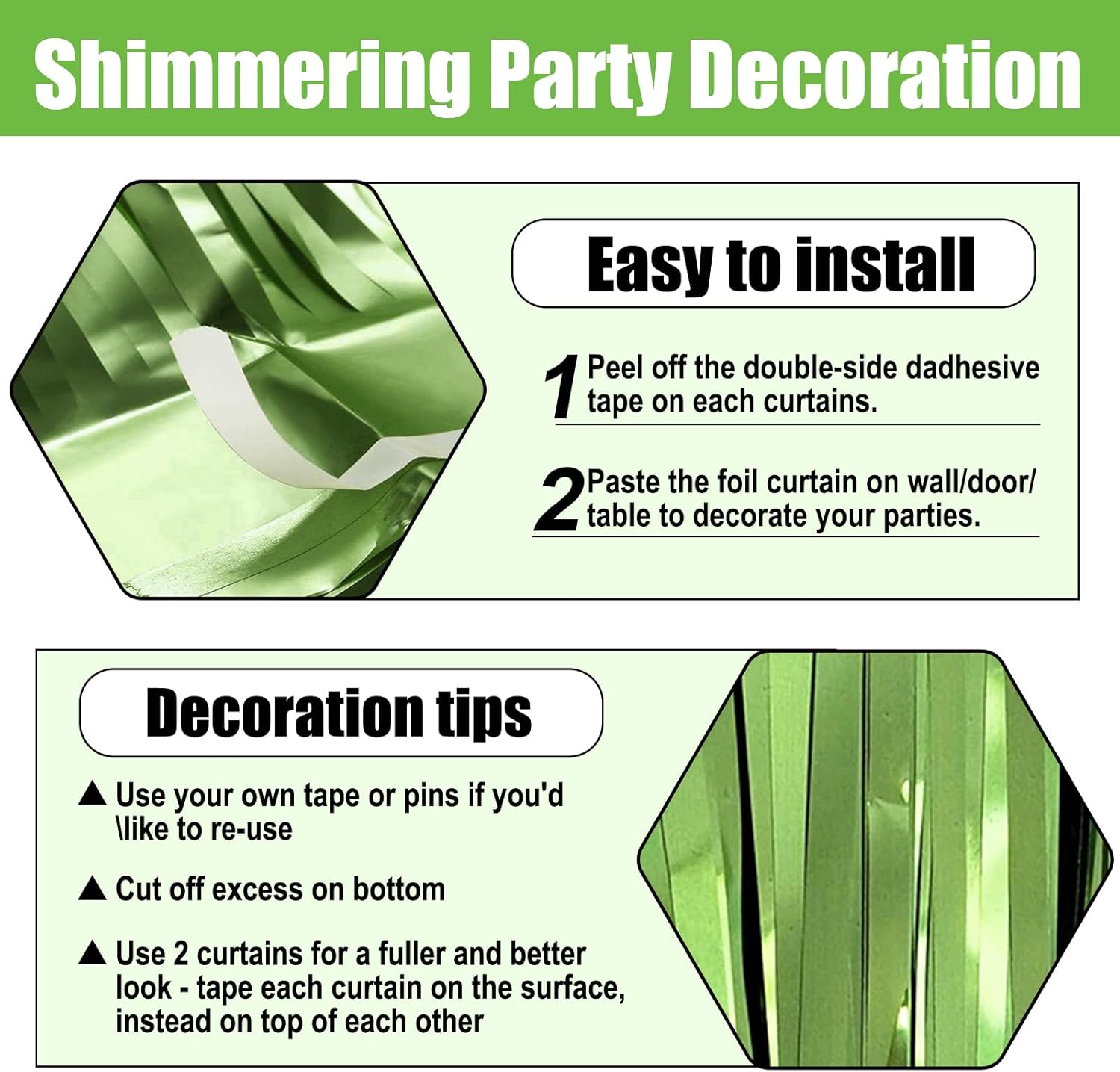 - Easy To Assemble | Strong Adhesive | Not Easy Fade : The foil fringe curtain backdrop party decorations come with double-sided adhesive tape, easy to use, just tear off the back of adhesive tape, then paste this streamers backdrop curtains on the top of wall, window, table, or as door fringe decoration.