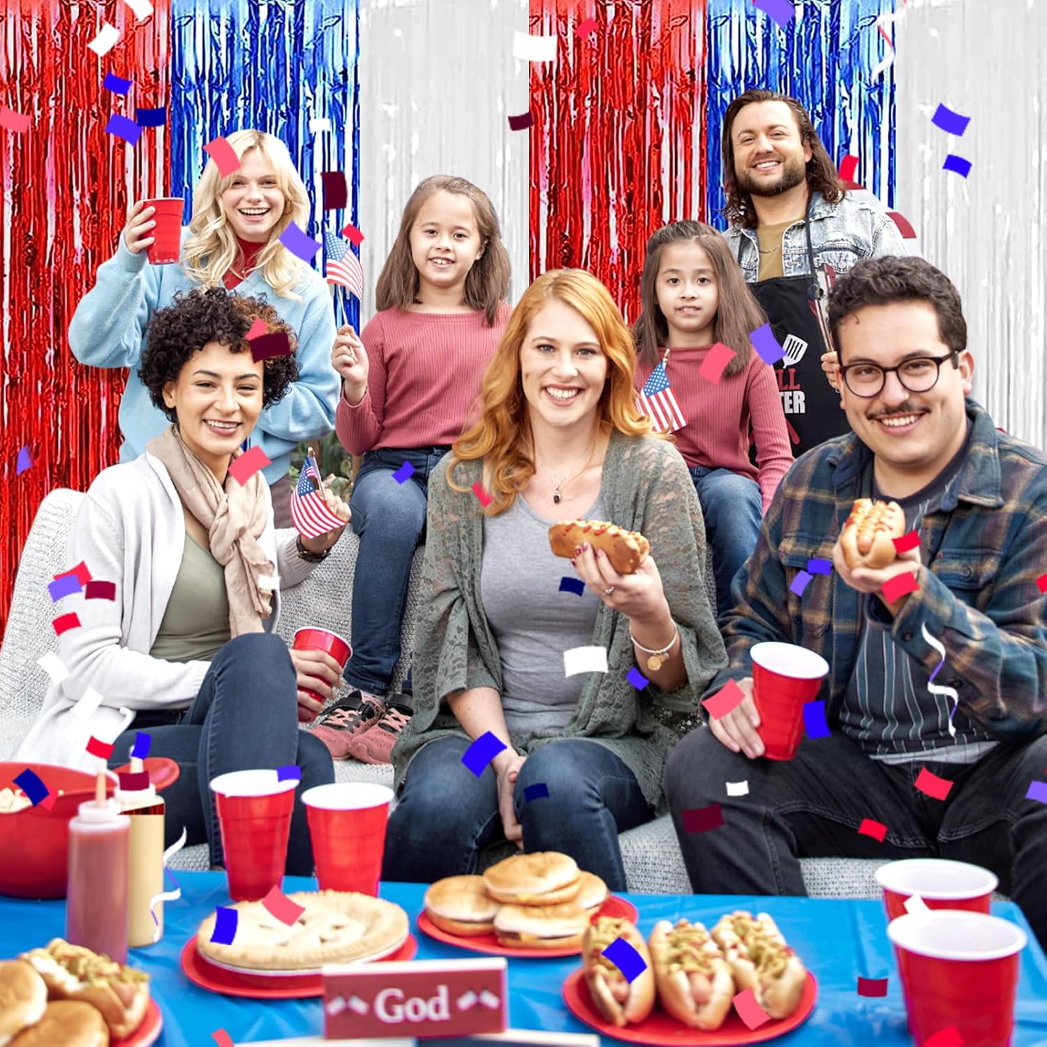 3 Pack White Blue Red Foil Fringe Curtain Backdrop, 3.28Ft x 8.2Ft Metallic Tinsel Foil Fringe Streamer Curtains for Photo Booth, Christmas Day, Thanksgiving, Wedding, New Year Party Decorations