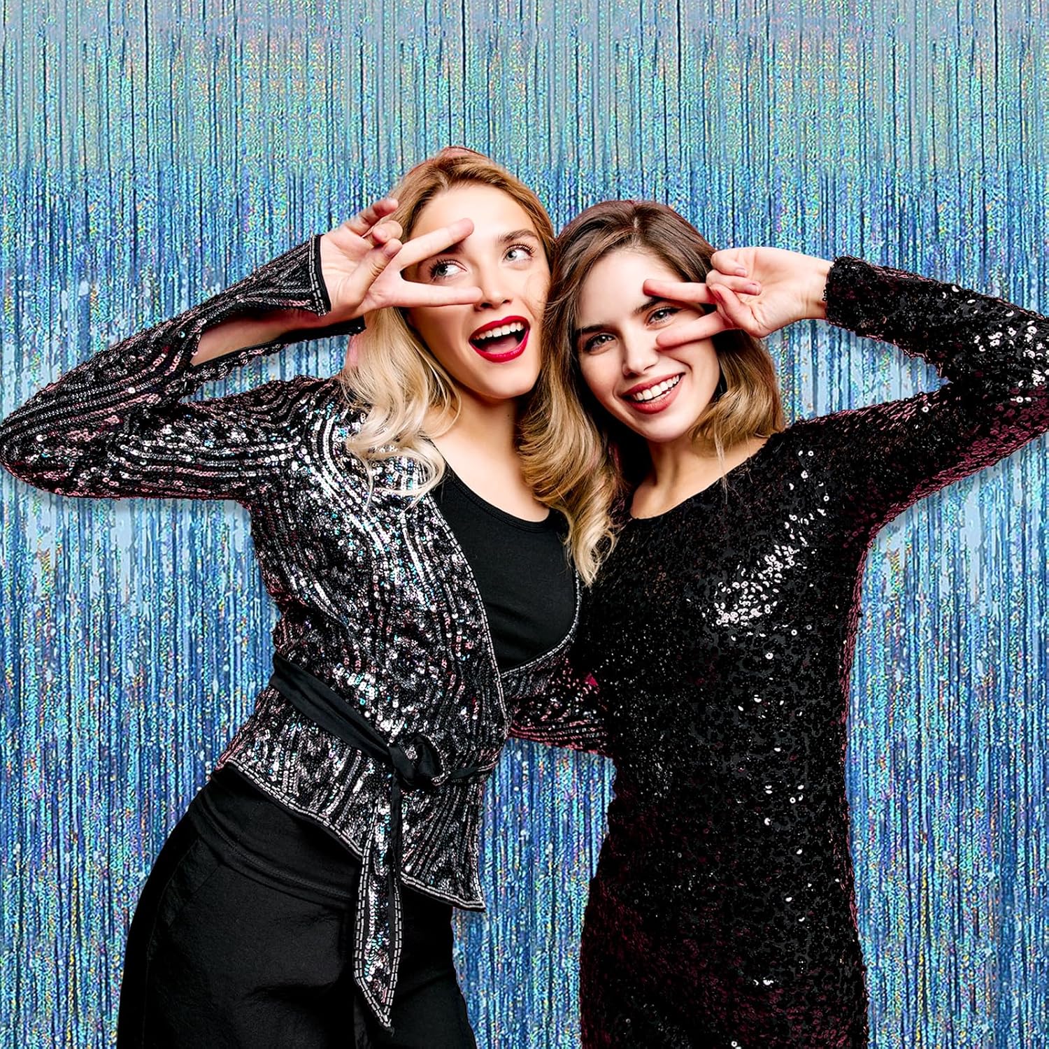 - Easy To Assemble | Strong Adhesive | Not Easy Fade : The foil fringe curtain backdrop party decorations come with double-sided adhesive tape, easy to use, just tear off the back of adhesive tape, then paste this streamers backdrop curtains on the top of wall, window, table, or as door fringe decoration.
