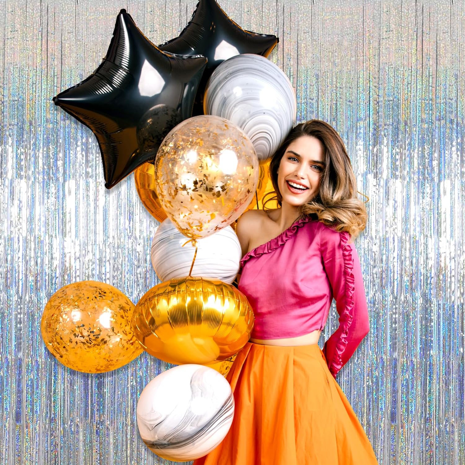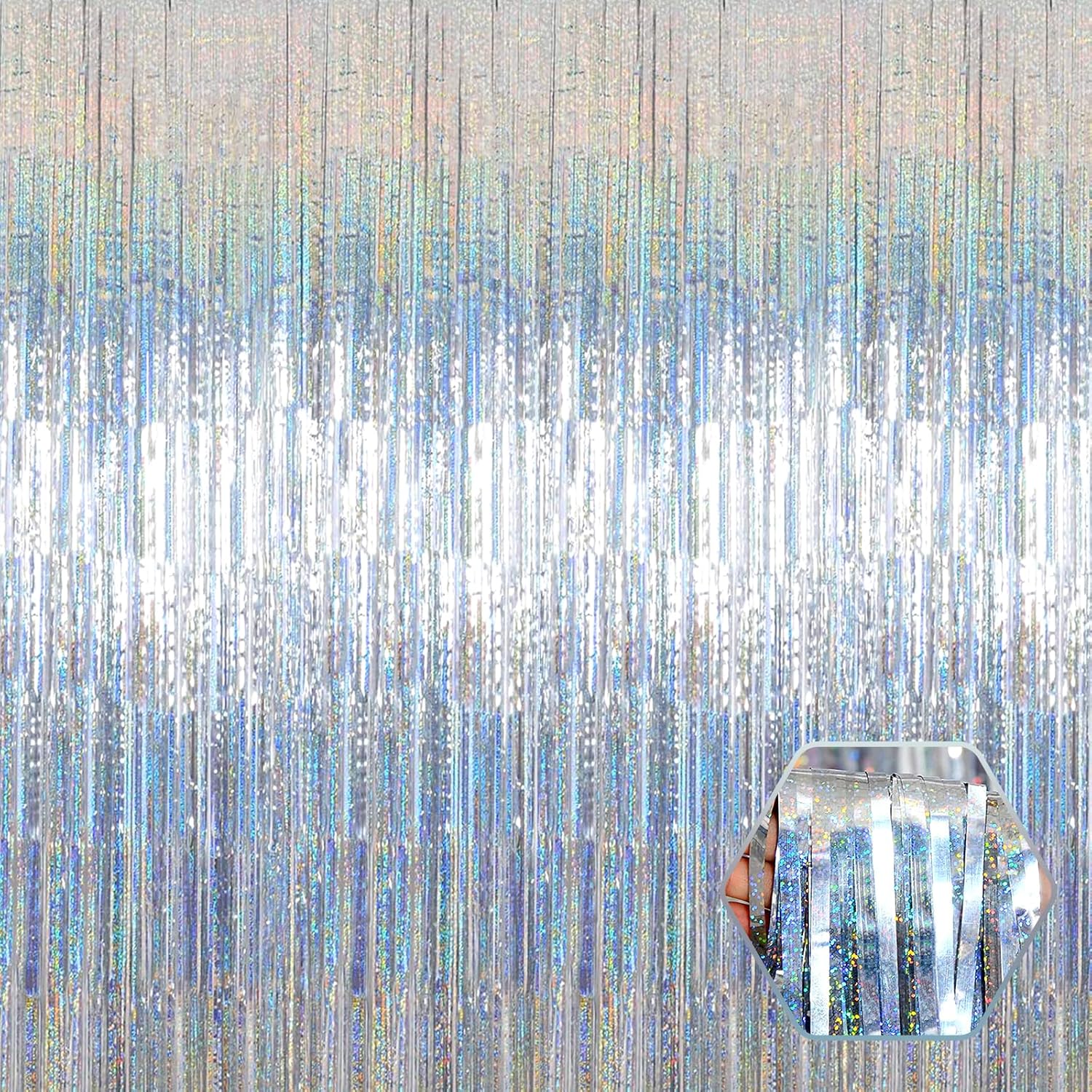 - Easy To Assemble | Strong Adhesive | Not Easy Fade : The foil fringe curtain backdrop party decorations come with double-sided adhesive tape, easy to use, just tear off the back of adhesive tape, then paste this streamers backdrop curtains on the top of wall, window, table, or as door fringe decoration.