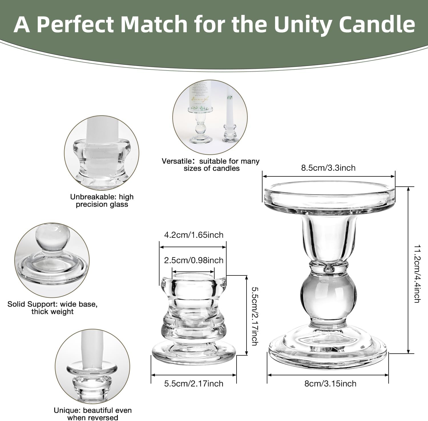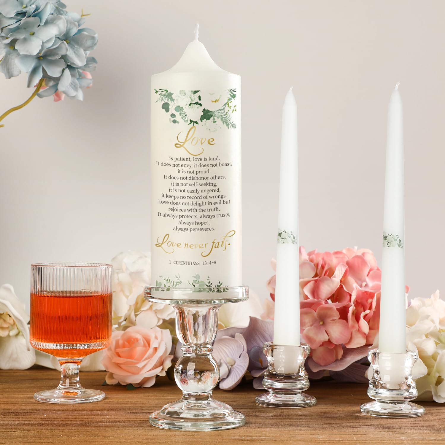 Extrogif 3 Unity Wedding Candles Set with Candle Holder for Ceremony Set, Glass Candlesticks and Pillar Taper Candles - Catholic Bible Religious Weddings Accessories