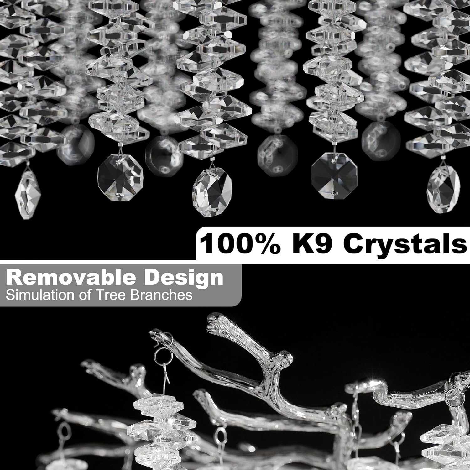 - 【Luxury Crystal Chandelier】This 28-light silver crystal chandelier for the high-ceilinged foyer entrance draws inspiration from nature, designed to resemble lush tree branches. It sparkles and exudes luxury, symbolizing abundance in love, career, family, and friendship. The chandelier features exquisite meticulously crafted from 100% transparent K9 crystal, offering purity and romance, shimmering with diamond-like brilliance. When illuminated, the entire fixture radiates a natural artistic beauty