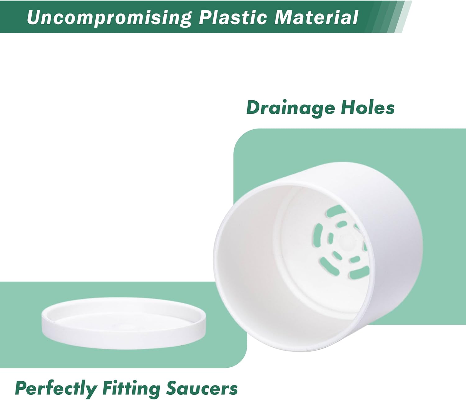 - Drainage holes at the bottom of the pot, with seamless design detachable, and perfectly fitting saucers included.