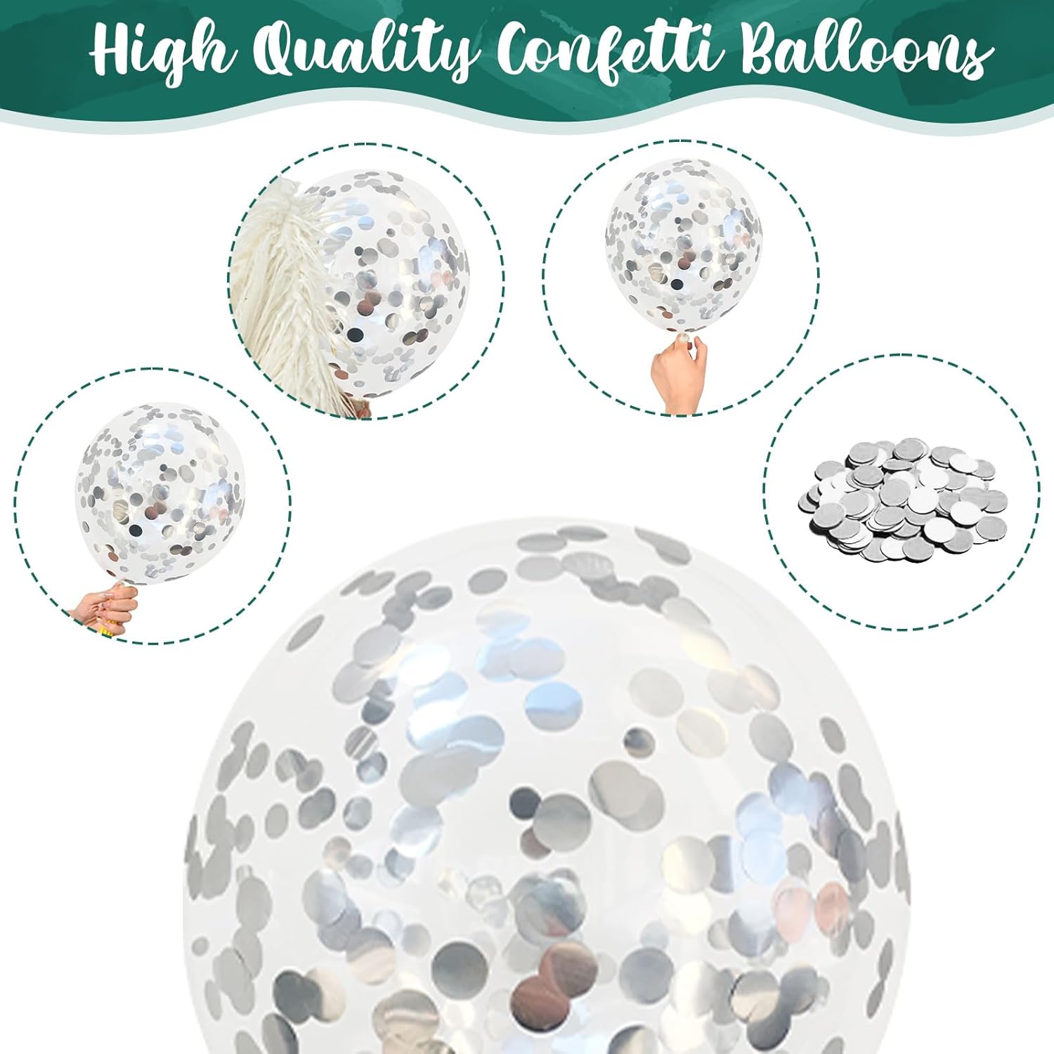 - ๐ Easy to Use - The teal blue green and silver balloons support both air and helium. You can blow them up with a mouth, pump or helium. After inflating, shake the confetti balloon and gently rub it with your hair or dry fabric to make the confetti stick to the side of the balloon, which can make the balloon look more beautiful. When the party is over, you can pop the balloons to let the confetti fall, adding fun to the party.