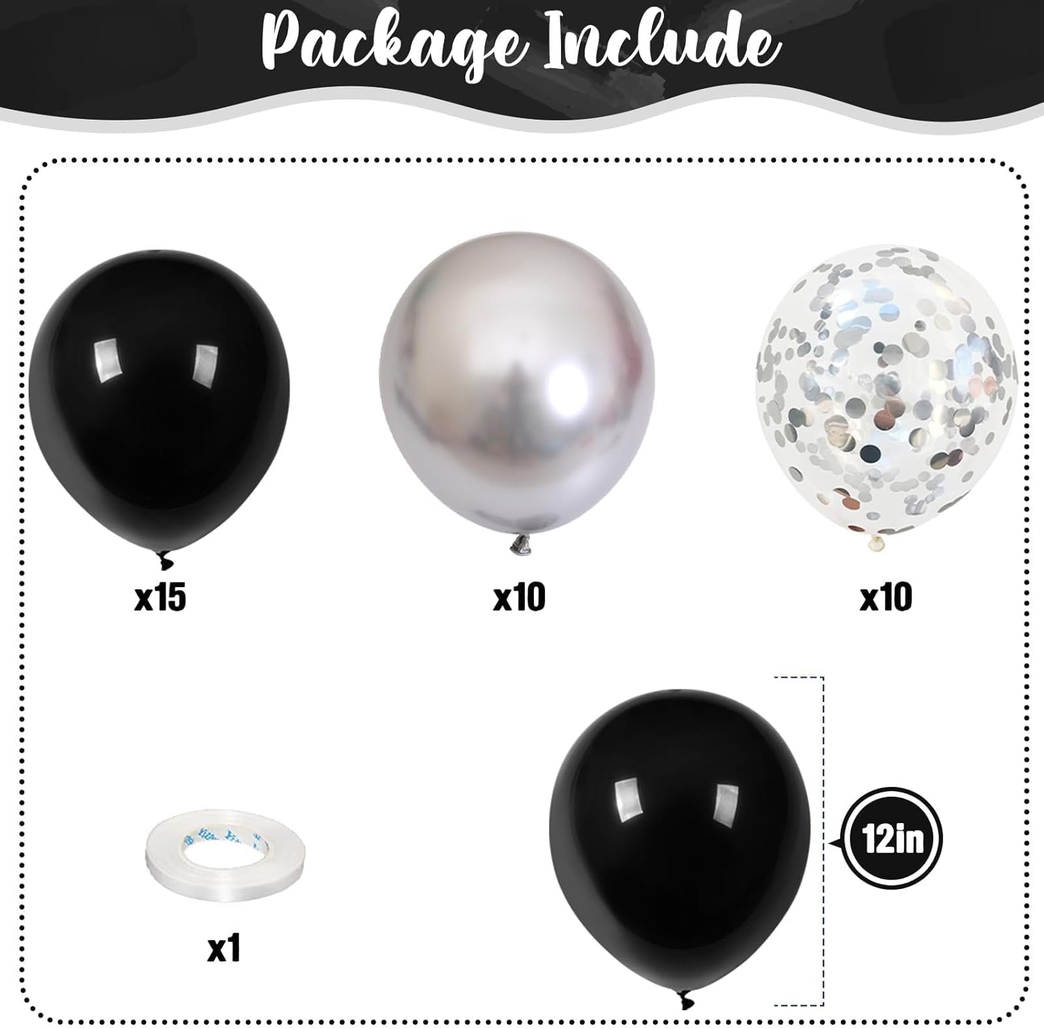 - ๐ Premium & Durable Material - The black silver confetti balloon kit is made of high quality 100% natural latex, thick thick and long-lasting, not easy to burst, every balloon has been rigorously tested and selected manually, safe for children. They can be filled with air or helium, suggested use with a balloon pump.