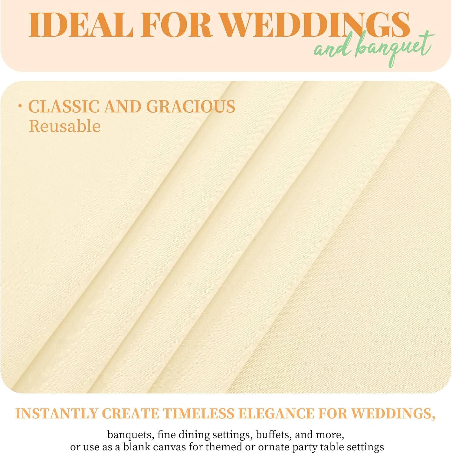 - đ„ăPremium Tablecloth FabricsăYou can get 12 pieces Beige tablecloth, our tablecloth is made of soft 180 GSM 100% premium polyester fabric that resists wrinkling for an always crisp, polished look. These materials are as skin-friendly as they are environmentally friendly. Protect and decorate your tables.