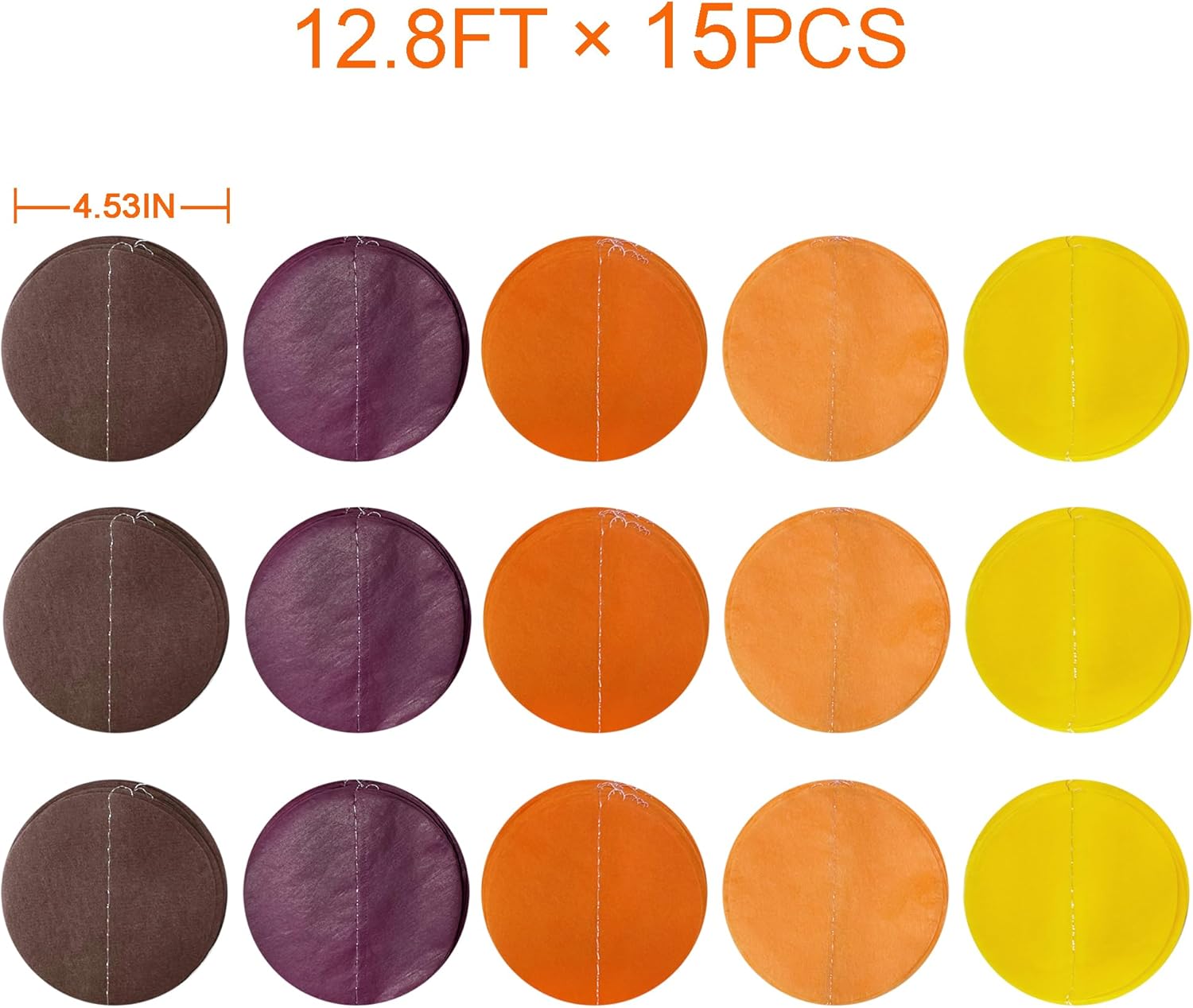 - 🟠PACKAGE CONTAINS- 15 packs of fall color circle dot party garland banner,each string is 12.8 feet/3.9 meters with 30 pcs polka dots, Total is 58.5 meters/192 feet.