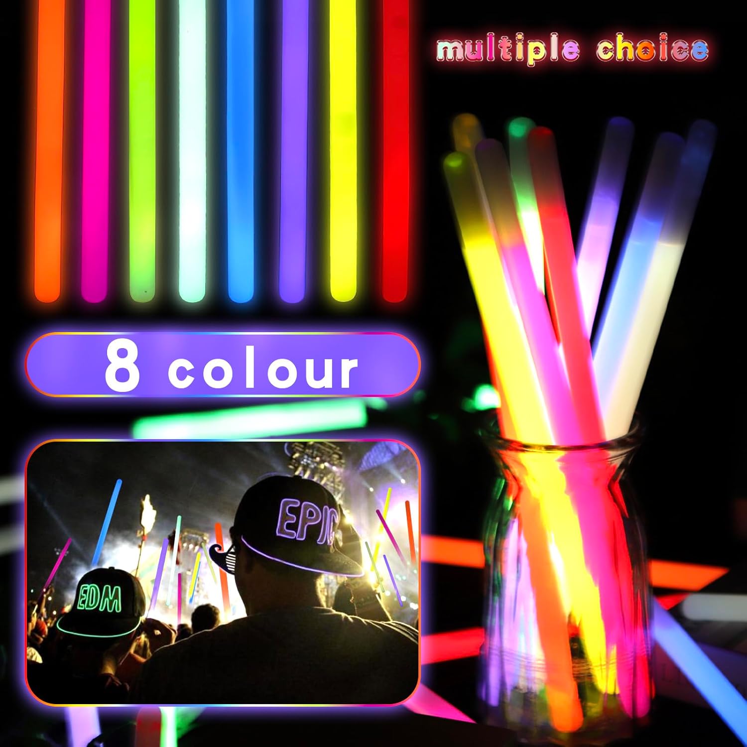 - 🎄Colorful options: Each box contains 20 giant glow sticks, with a total of eight colors to choose from, including yellow, blue, pink, orange, green, white, red and purple. Meet the needs of different occasions and personal preferences.