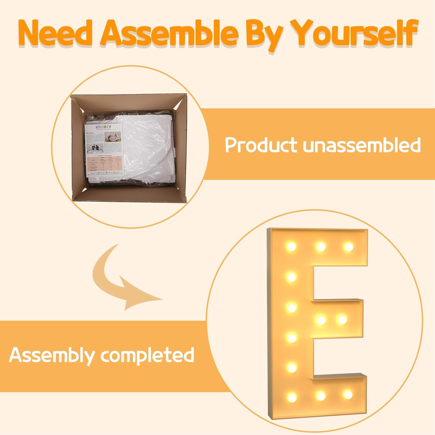 - Assembly Required: Our large marquee letters is made from foam board and easy to assemble with our splicing mode. Just follow the numbered instructions to align and insert the bottom plate, and reinforce it with a hot glue gun. Then, you're done!