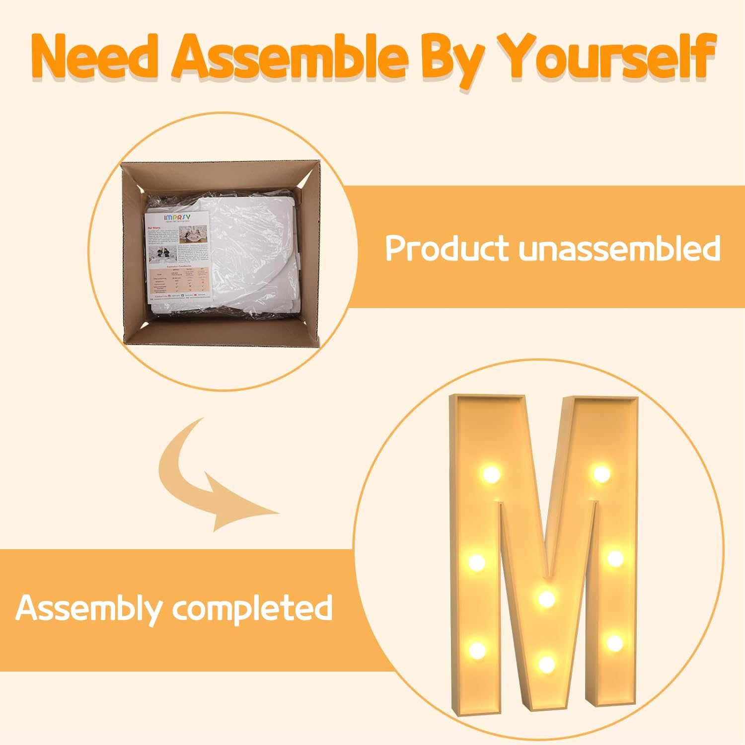 - Assembly Required: Our large marquee letters is made from foam board and easy to assemble with our splicing mode. Just follow the numbered instructions to align and insert the bottom plate, and reinforce it with a hot glue gun. Then, you're done!