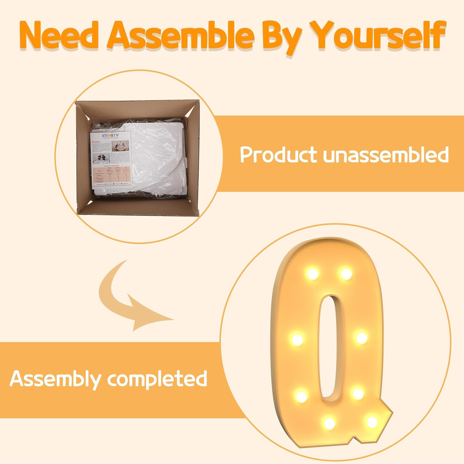 - Assembly Required: Our large marquee letters is made from foam board and easy to assemble with our splicing mode. Just follow the numbered instructions to align and insert the bottom plate, and reinforce it with a hot glue gun. Then, you're done!
