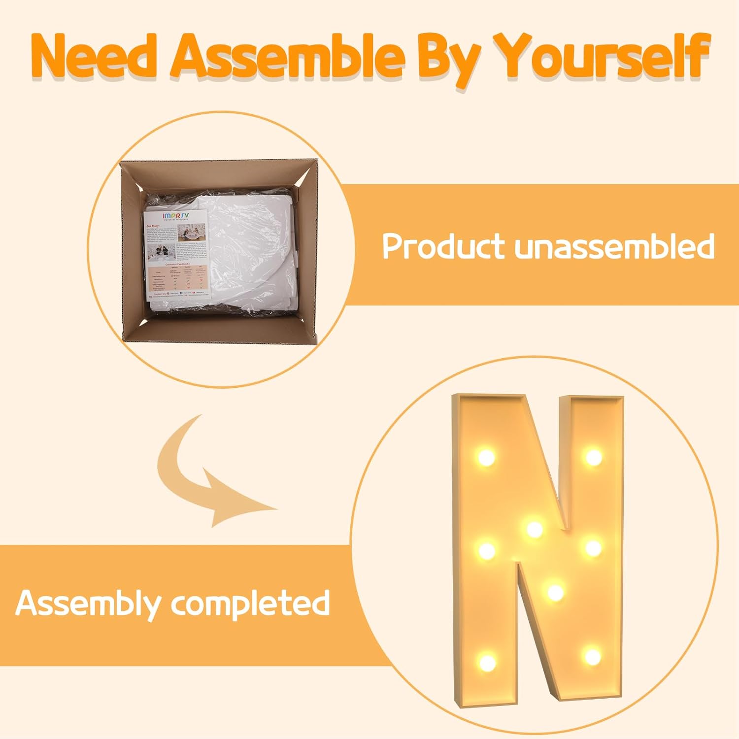 - Assembly Required: Our large marquee letters is made from foam board and easy to assemble with our splicing mode. Just follow the numbered instructions to align and insert the bottom plate, and reinforce it with a hot glue gun. Then, you're done!