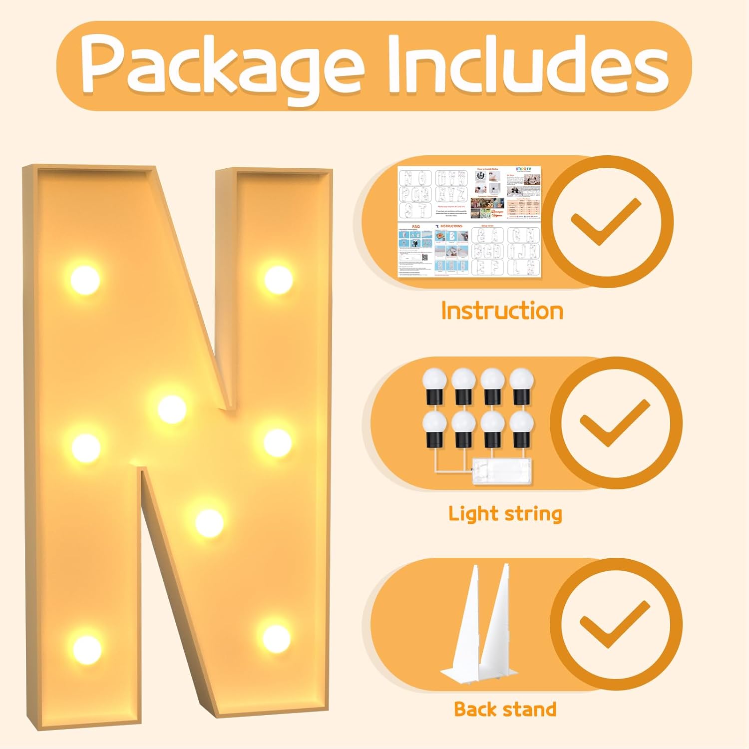 Marquee Letters 3 Feet Tall Large Light Up Letters N Happy Birthday Decorations Marry Me Engagement Party Decor Yellow Light Birthday Decorations Balloon Arch Kit Foam Sign N