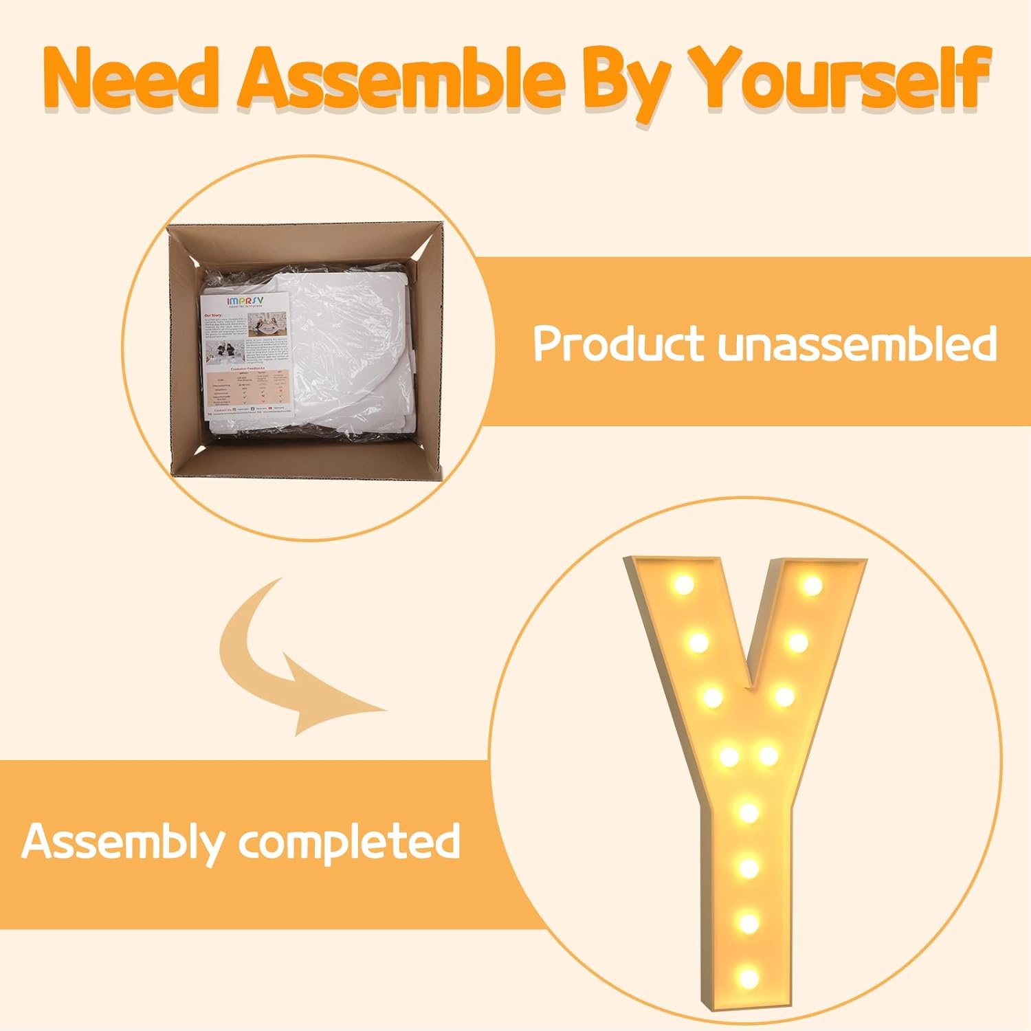 - Assembly Required: Our large marquee letters is made from foam board and easy to assemble with our splicing mode. Just follow the numbered instructions to align and insert the bottom plate, and reinforce it with a hot glue gun. Then, you're done!