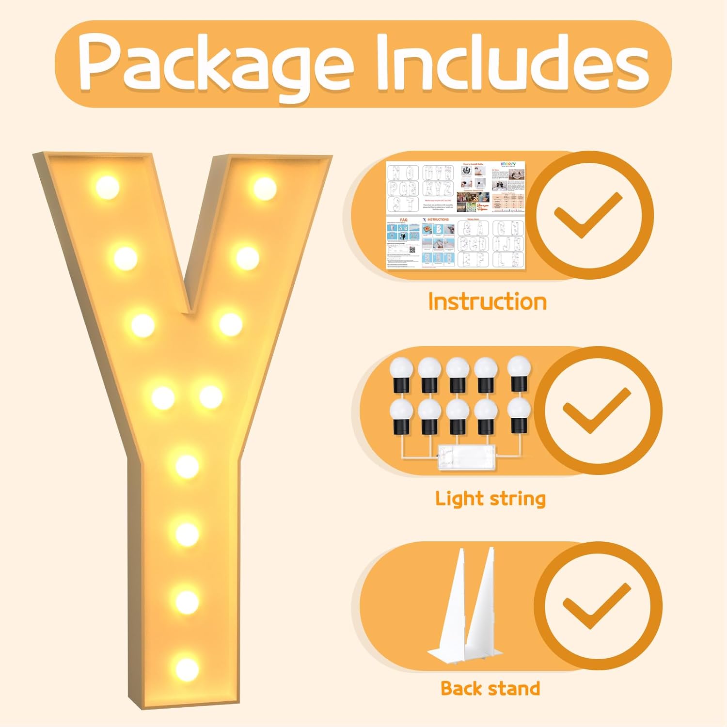 Marquee Letters 4 Feet Tall Large Light Up Letters Y Baby Shower Decorations Marry Me Engagement Party Decor Yellow Light Birthday Decorations Balloon Arch Kit Foam Sign Y