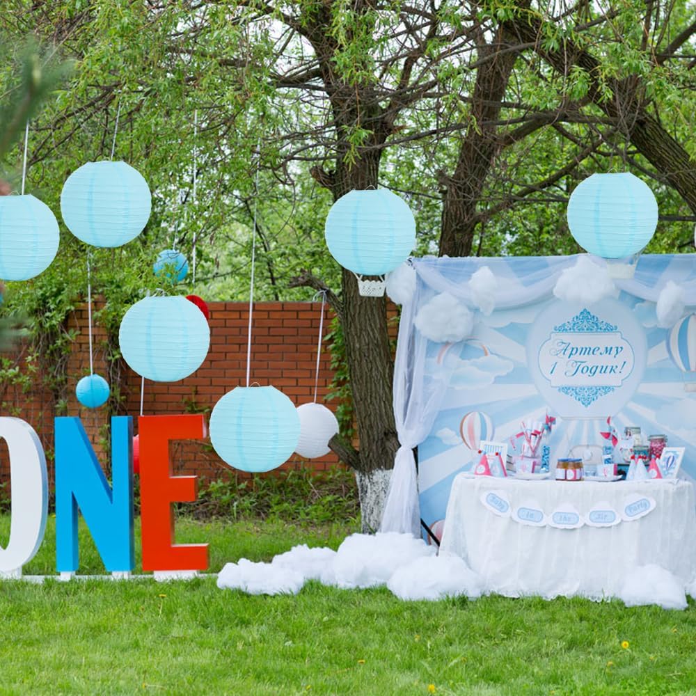 BEISHIDA 10-Inch Light Blue Round Paper Lanterns Decorative Hanging Asia Chinese Japanese Paper Lanterns Lamp for Birthday Wedding Baby Shower Home Decor Party Decoration(6 Packs)
