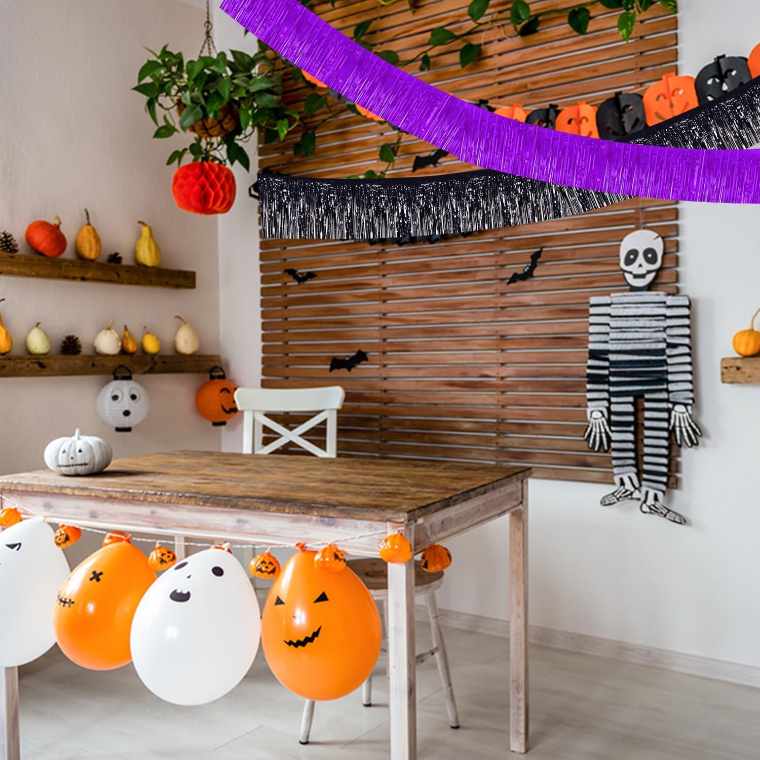 BEISHIDA 3 Packs 30 Feet Metallic Foil Fringe Garland Tinsel Streamers,Shiny Purple Wall Hanging Tinsel Fringe Banners for Wedding Birthday Party Decoration Halloween Christmas New Year