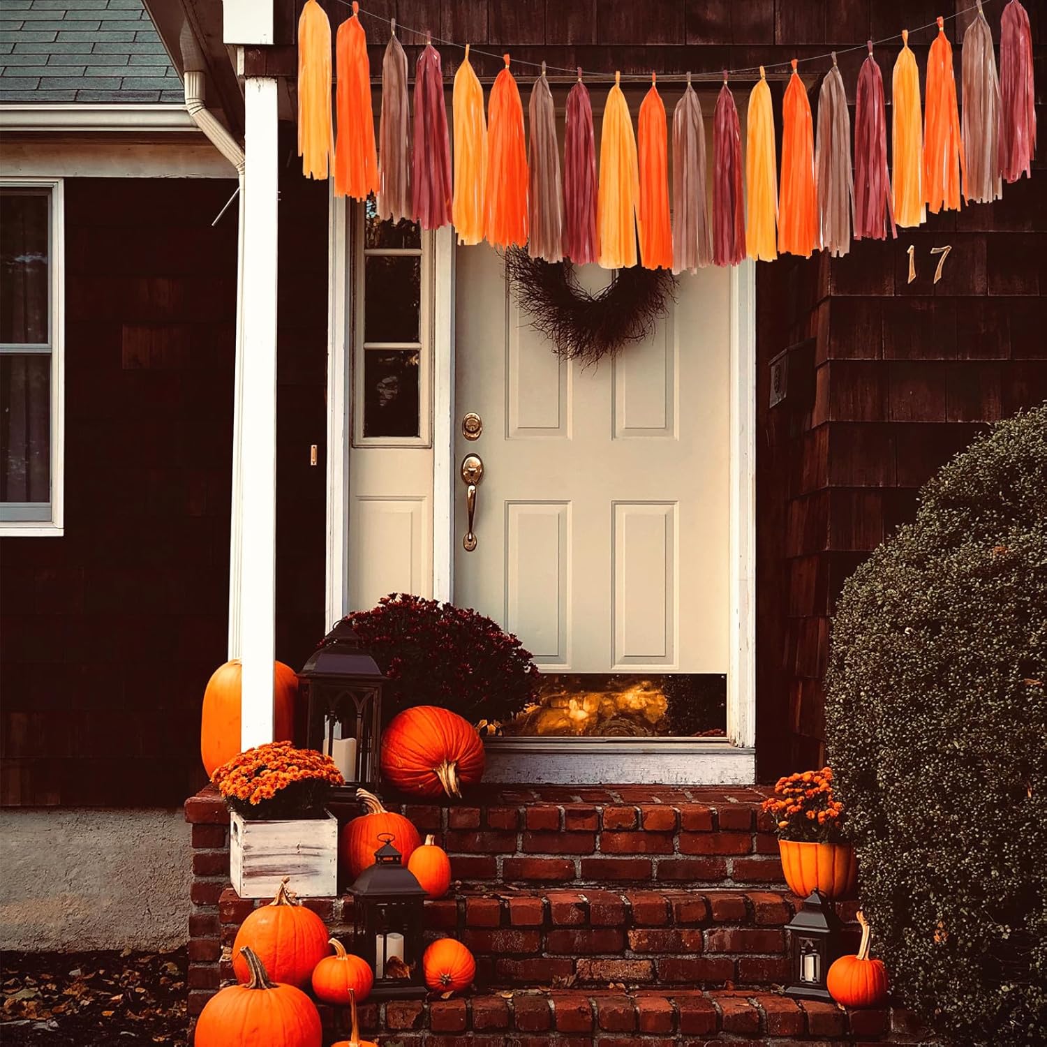 Brown Burgundy Orange Party-Decorations Tassel-Garland - 20pcs Fall Autumn Thanksgiving Harvest Tassels, Rustic Boho Wedding Birthday Baby Shower Decor Panduola