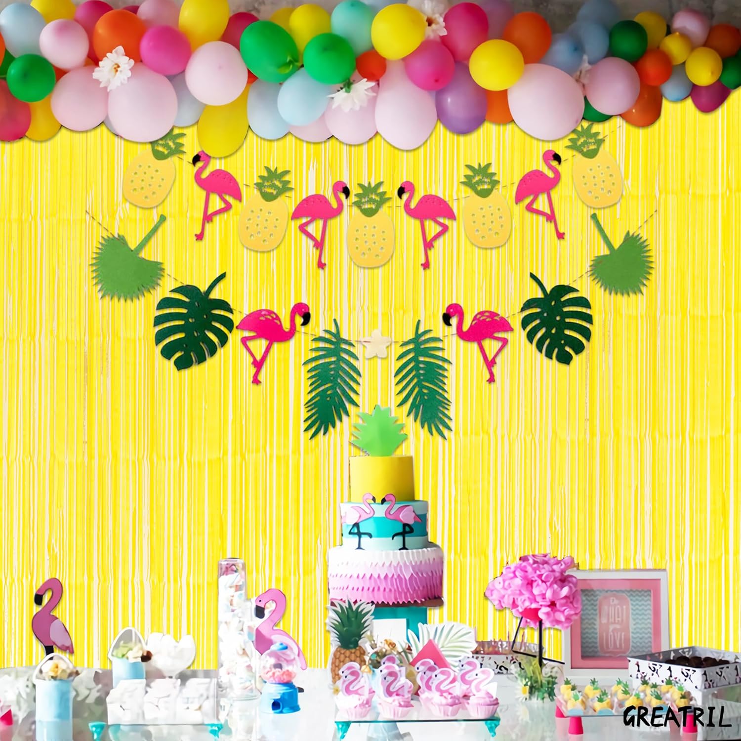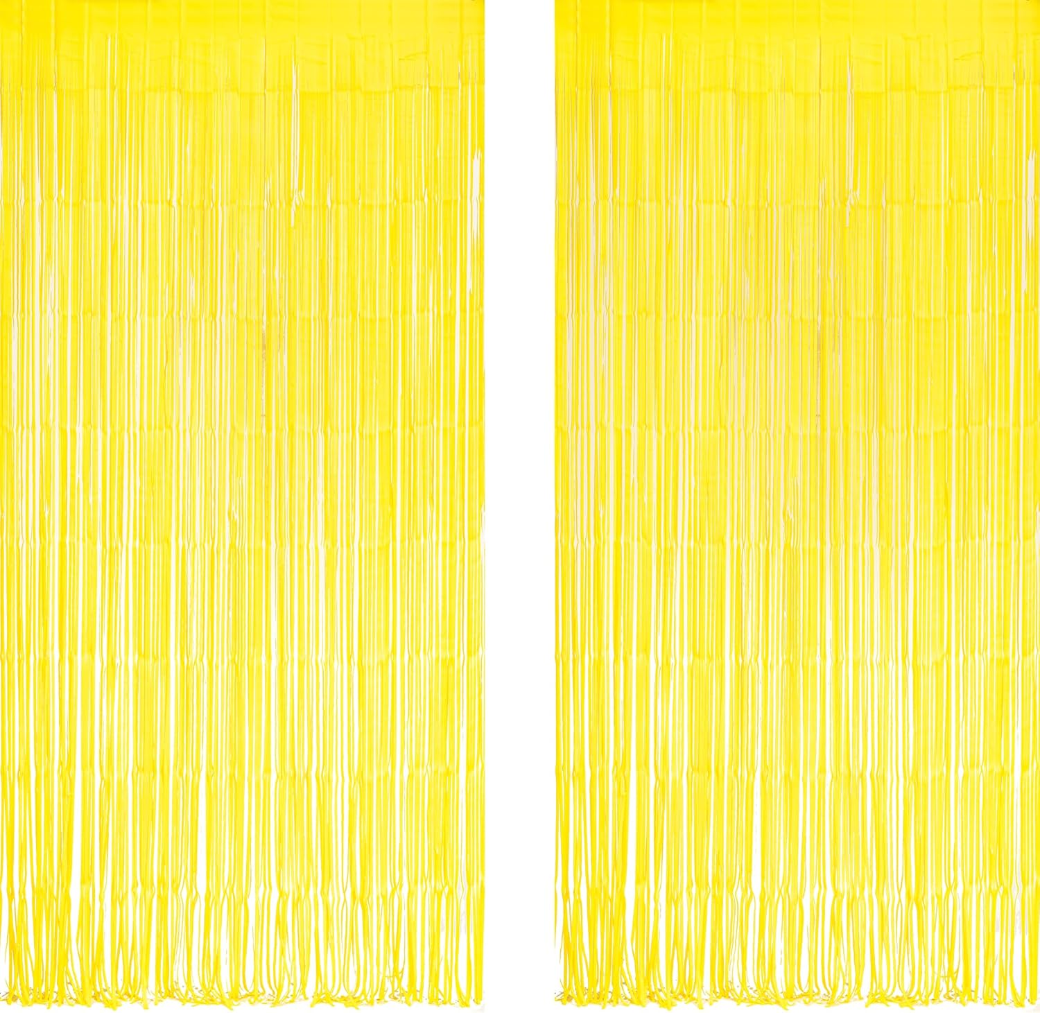Yellow Streamers Party Backdrop - GREATRIL Foil Fringe for Pineapple/Lemon/Truck/Race Birthdays Party Decoration - 3.2ft X 8.2ft - 2 Packs