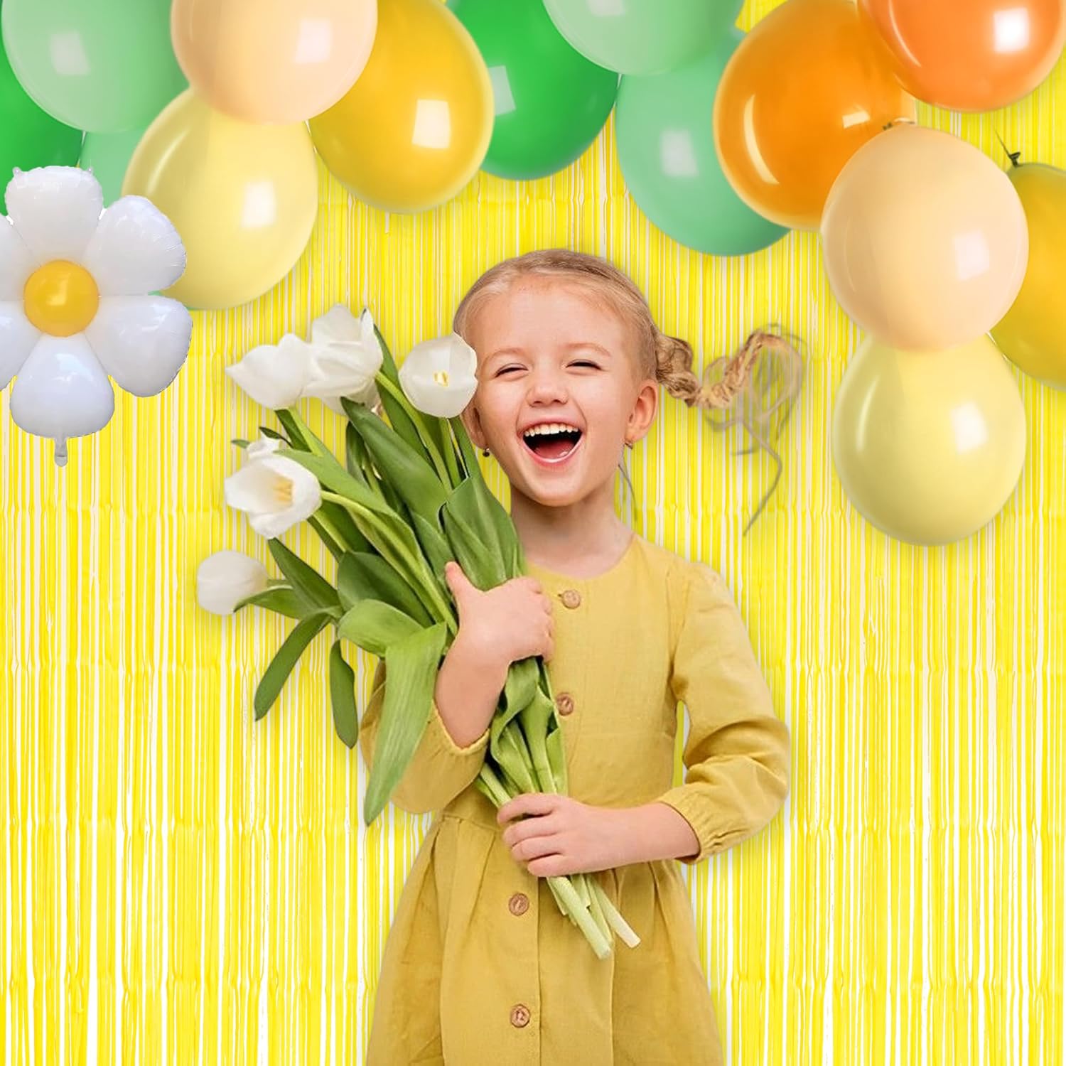 - Elevate your party with our Yellow party backdrop streamers, it can creating a vibrant and cheerful atmosphere with themes like Sunflowers, bee-inspired gatherings, and dazzling tinsel backdrops.