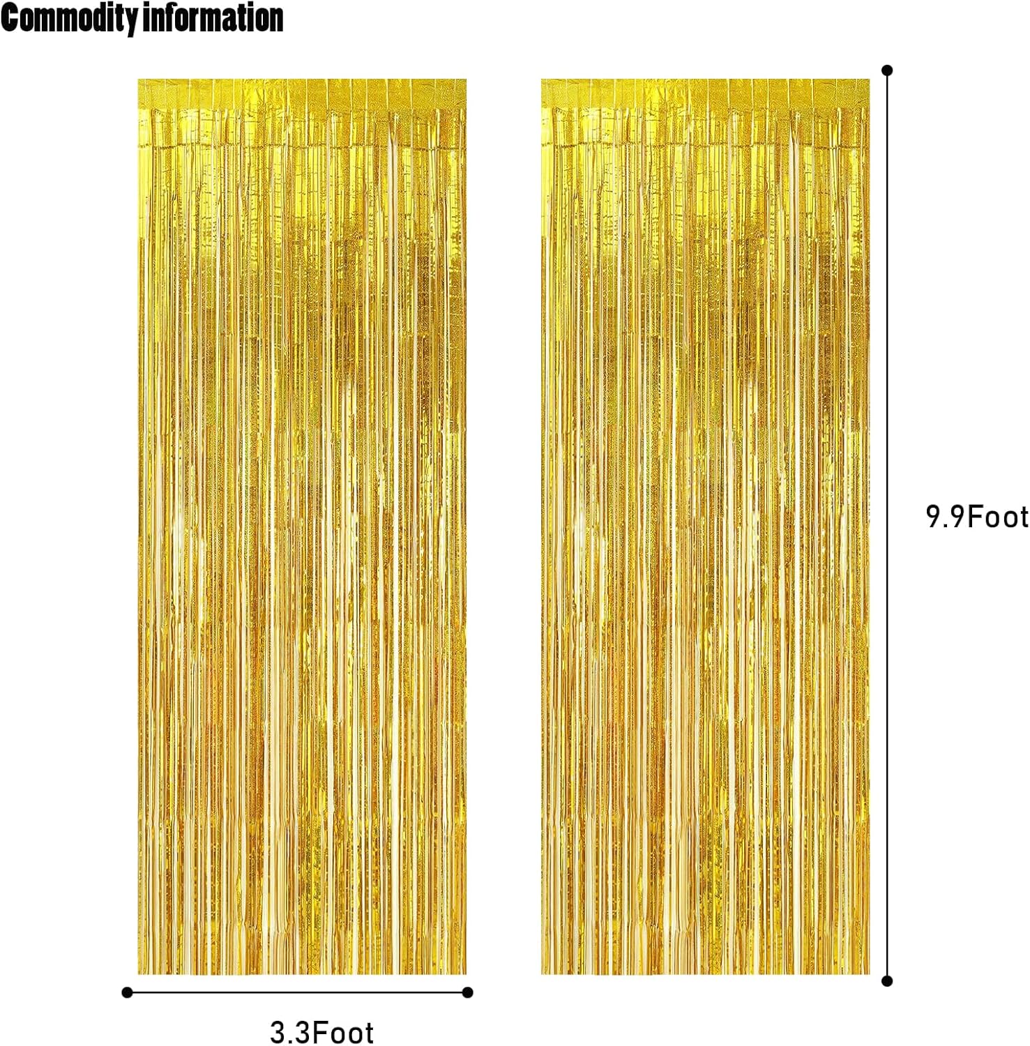- 🎉PACKAGE INCLUDED : 2 pack of gold foil fringe curtains, the size of each tinsel curtain is 3.3 ft x 8.2 ft, enough length for hanging on a door or covering a wall fully, suitable for any parties.