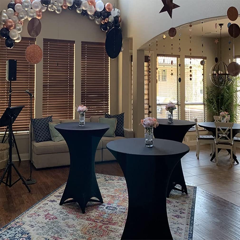Tina's 10 Pack 30x42 Inch Highboy Spandex Cocktail Table Covers Black, Fitted Stretch Cocktail Tablecloth for Round Tables (10PC 30X42 Black)