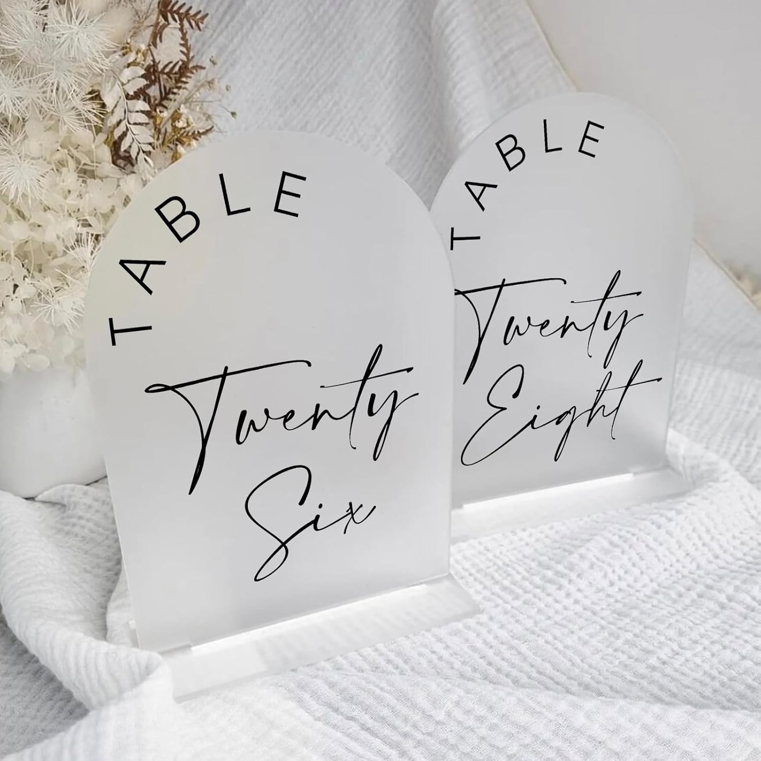 - SIMPLE & ELEGENT DESIGN: These modern minimalistic acrylic arch table numbers are the perfect touch to add to your wedding. We love the sleek, clean lines of these frosted acrylic signs, they are a beautiful wedding table centerpieces decorations, perfect for displaying on Tabletop Centerpiece.