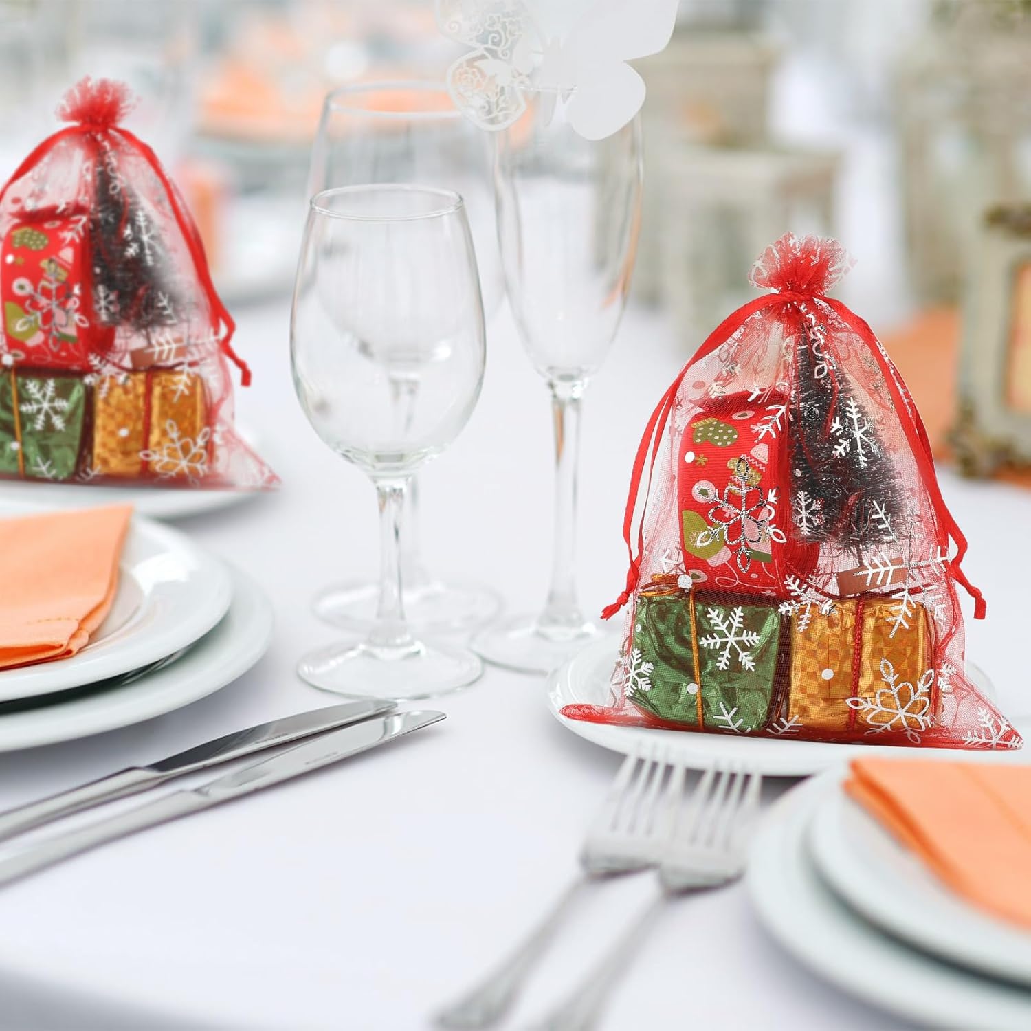 - 【Christmas Organza drawstring bags】The red organza bags have two white strings at the mouth of the bags to drawstring bags. The red ribbon strings can be decorated with the organza bags to make them look more holy and perfect for weddings.