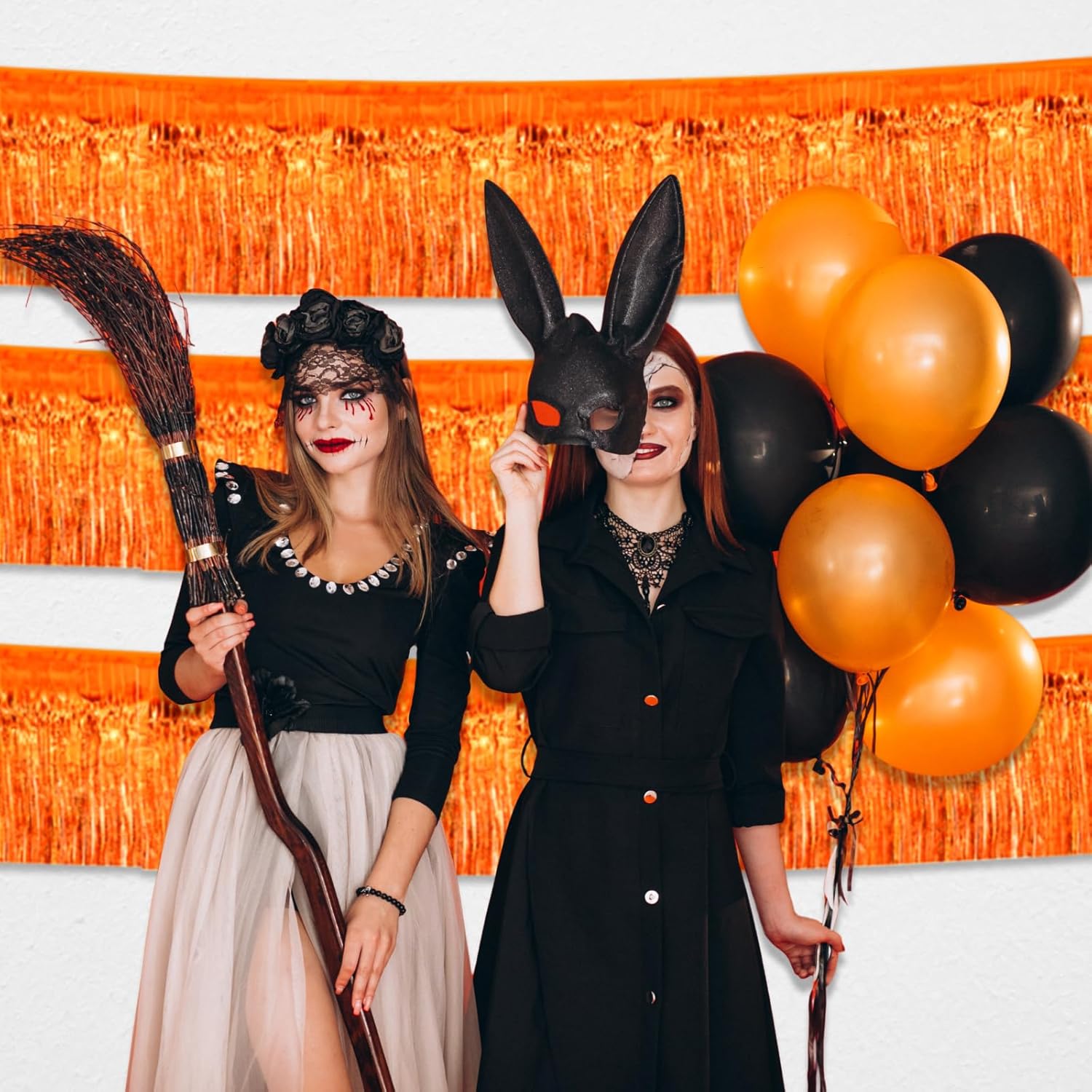 4 Pack 10 Feet Orange Foil Fringe Garland Metallic Tinsel Streamers Banner Wall Hanging Curtain Backdrop for Parade Floats, Wedding, Graduate, Mother's Day, Birthday Party Decoration