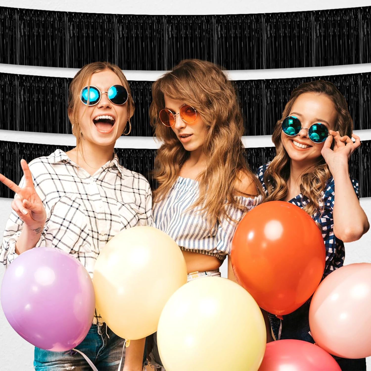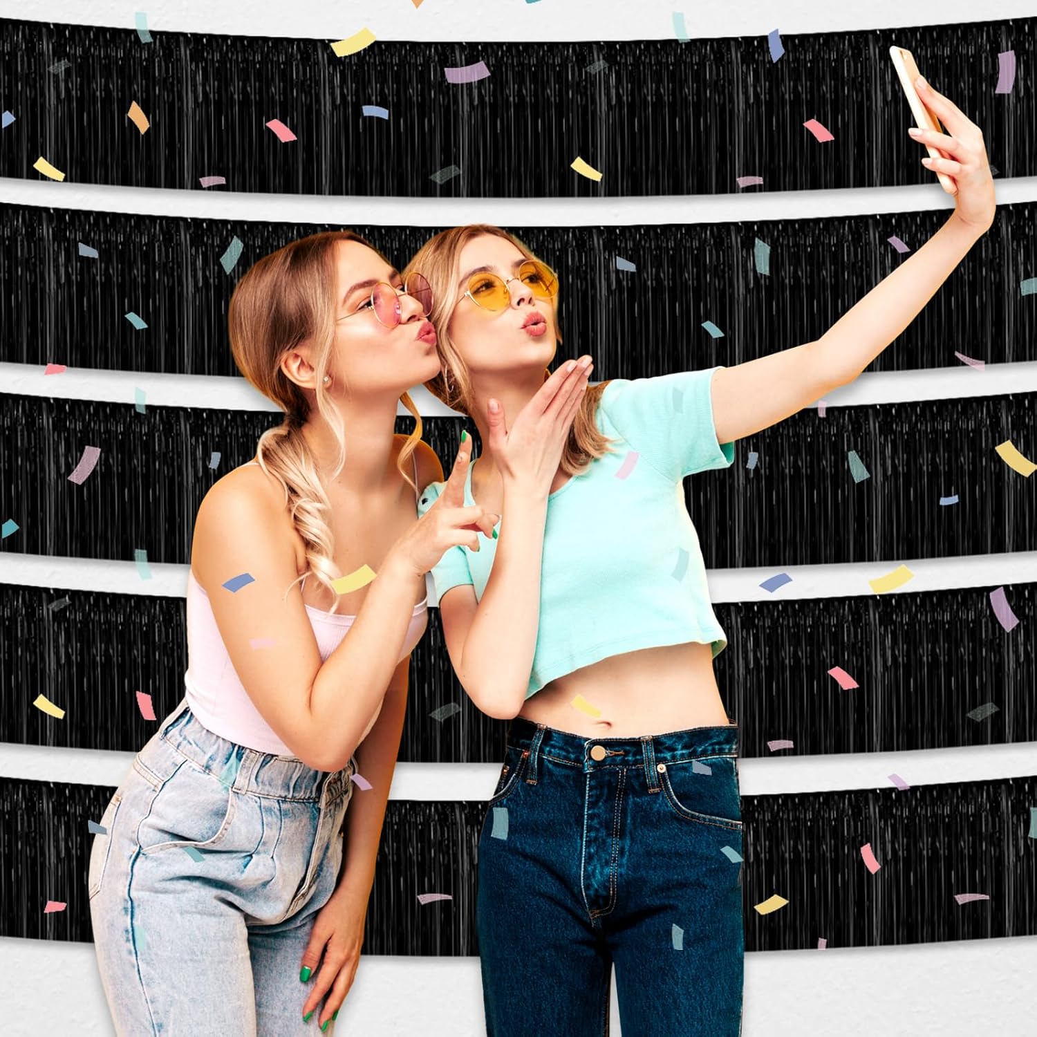 4 Pack 10 Feet Black Foil Fringe Garland Metallic Tinsel Streamers Banner Wall Hanging Curtain Backdrop for Parade Floats, Wedding, Graduate, Mother's Day, Birthday Party Decoration