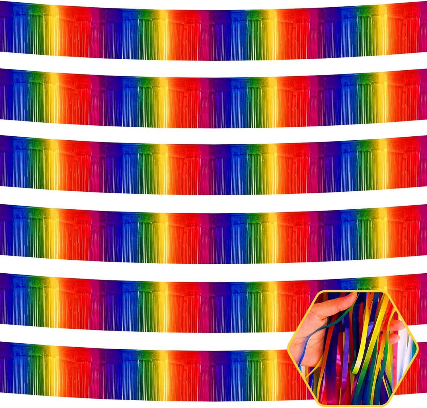 6 Pack 10 Feet Rainbow Foil Fringe Garland Metallic Tinsel Streamers Banner Wall Hanging Curtain Backdrop for Parade Floats, Birthday, Graduate, Mother's Day, Wedding Party Decoration
