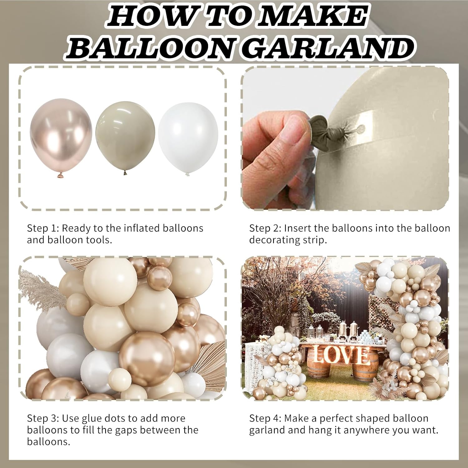 - 🎈What You Get - Sand White Gold Balloon Garland Arch Kit, package including 70pcs 10 inches balloons(metallic champagne gold*20, matte white*25, sand white*25), 70pcs 5 inches balloons(metallic champagne gold*20, matte white*25, sand white*25), 1pc balloon strip, 1pc dot glue. All in one value package! They are ideal for adding an extra dose of fun to any entertaining party.