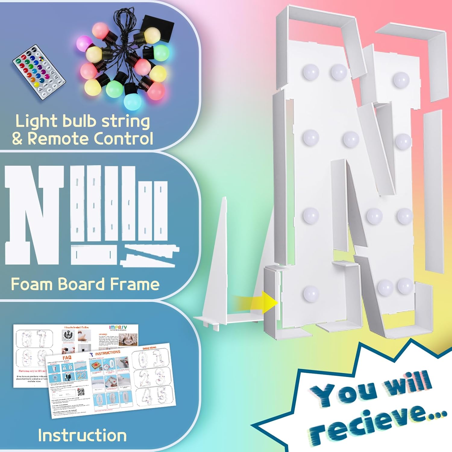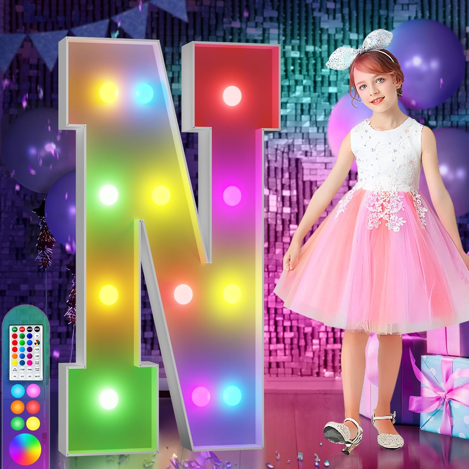 imprsv 4FT Colorful Marquee Light Up Letters N, 18 Colors Large Light up Letters Alphabet Sign with Remote, Large Marry Me Sign, Birthday Party Decorations Baby Shower Anniversary Wedding Decoration