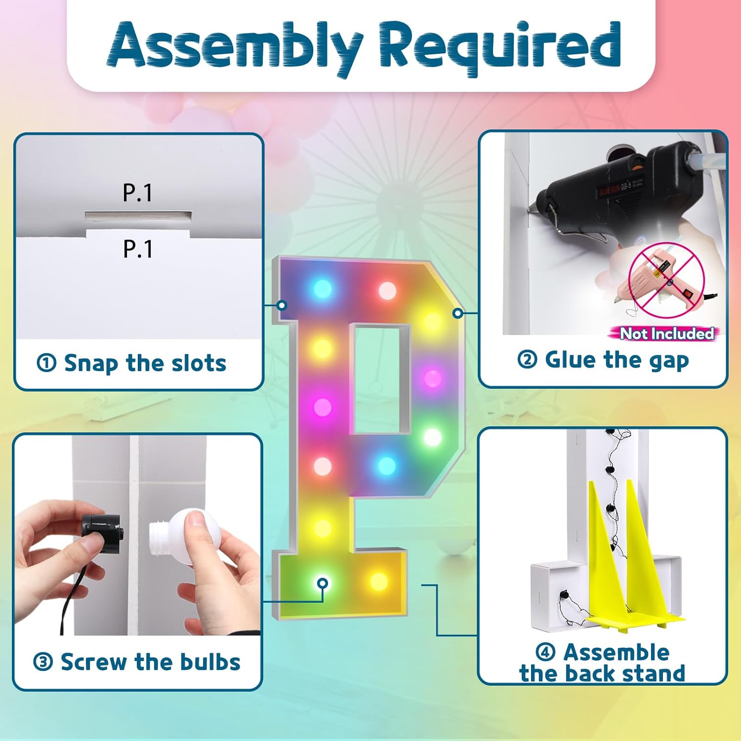 imprsv 4FT Colorful Marquee Light Up Letters P, 18 Colors Light Up Letters Alphabet Sign with Remote, Giant Letters for Events, Large Sign for Birthday Engagement Anniversary Wedding Party Decor