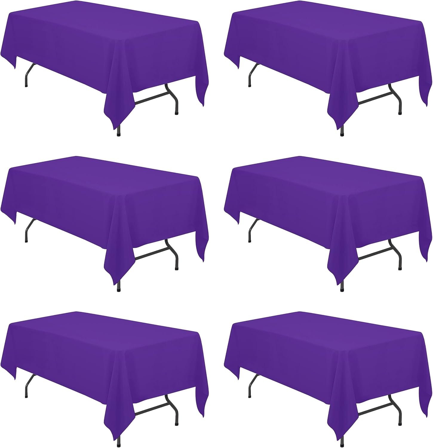 BRILLMAX 6 Pack Purple Tablecloths for 6 Foot Rectangle Tables 60 x 102 Inch - 6ft Rectangular Bulk Linen Polyester Fabric Washable Cloth Cover for Wedding Reception Banquet Birthday Party