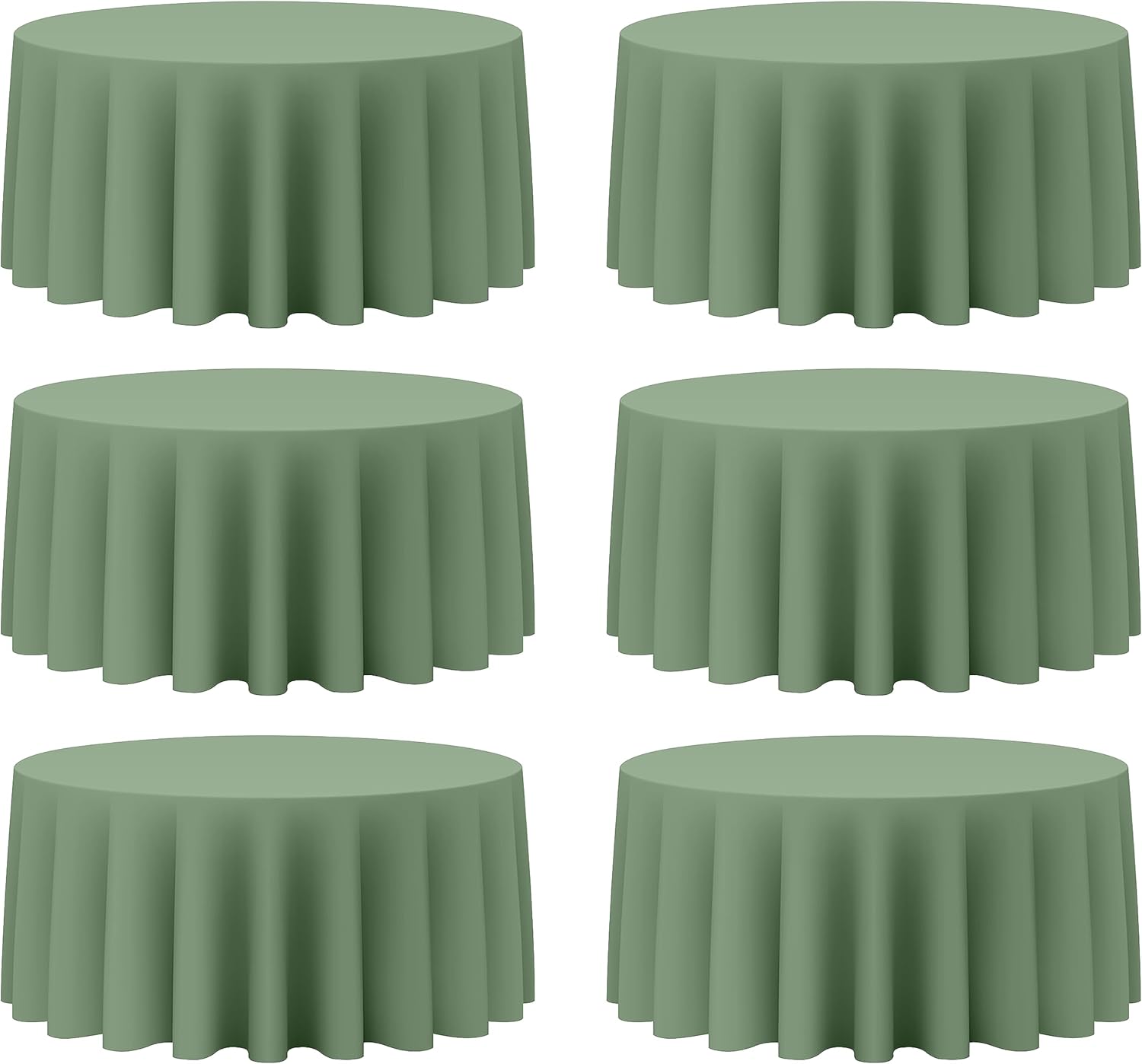BRILLMAX 6 Pack Sage Green Round Tablecloths 132 Inch - Circle Bulk Linen Polyester Fabric Washable Table Cloth Cover for Wedding Reception Banquet Birthday Party Buffet Restaurant