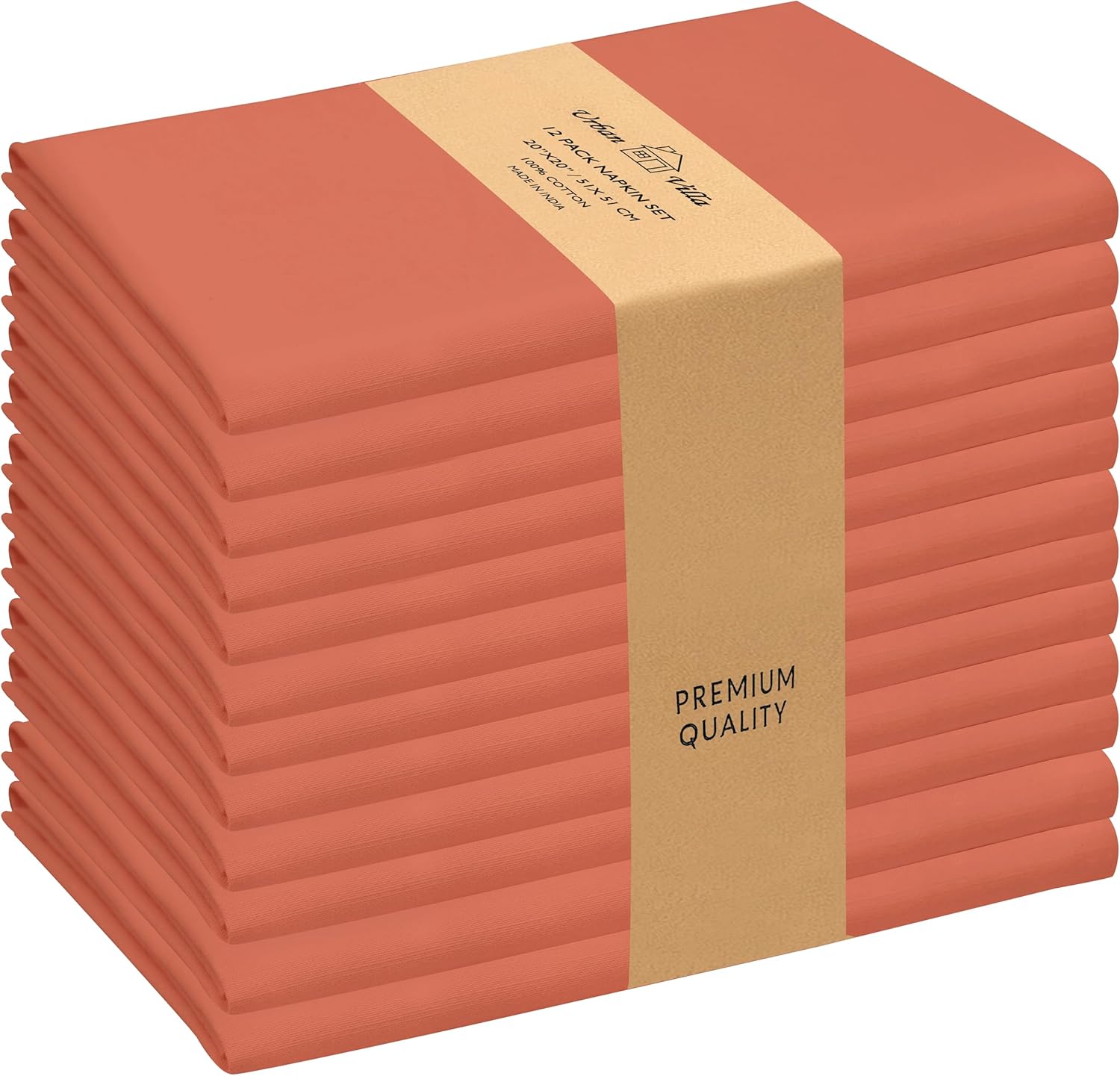 Urban Villa Fall Cloth Napkins Rust Color Dinner Napkins Set of 12 20''x20'' 100% Cotton Slub Absorbent Harvest Napkins Washable ReusableThanks Giving Dinner Napkins