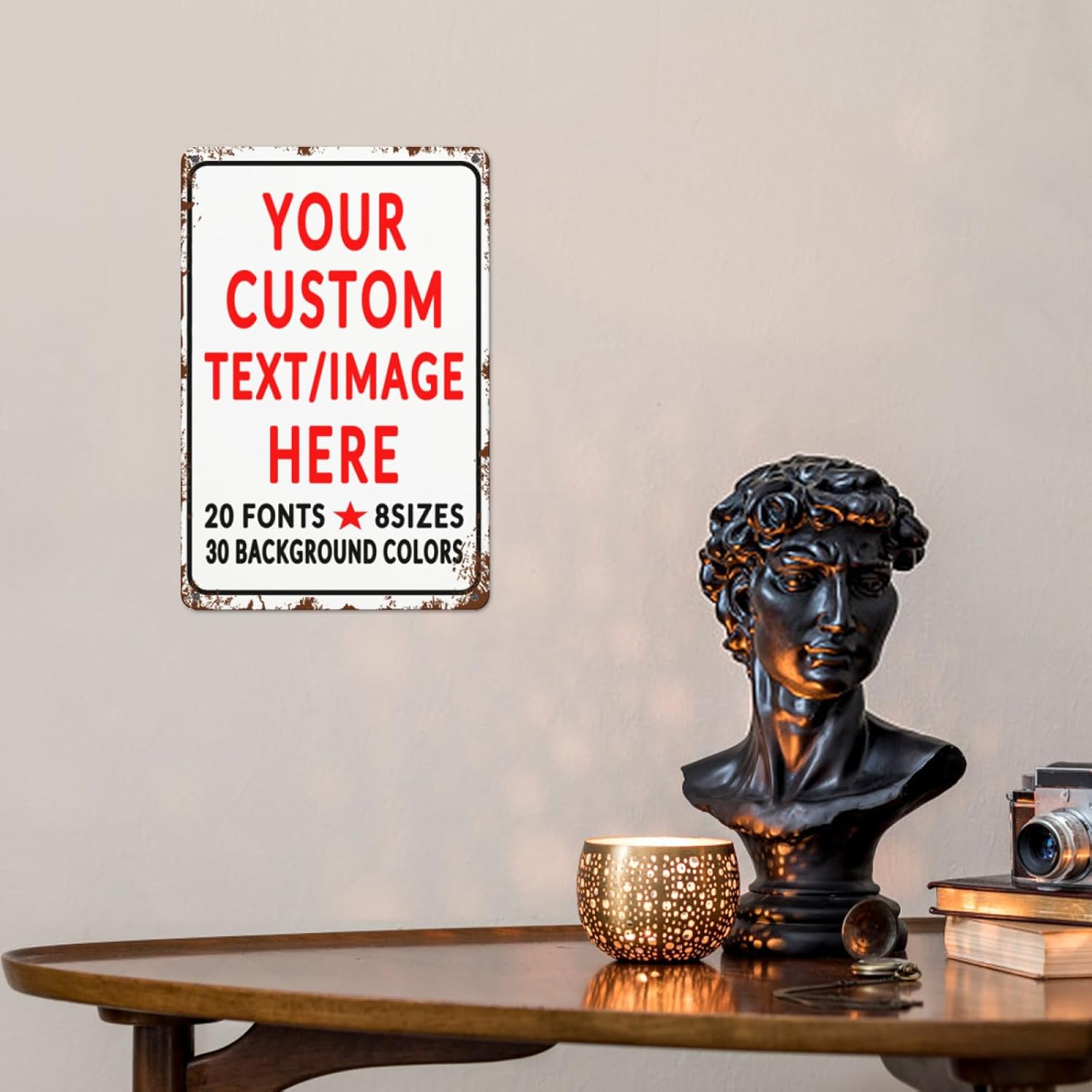 - CUSTOM YOUR OWN PERSONALIZED METAL SIGNS - By Upload Your Image Or Text Or Logo! Please Start By Clicking "Customize Now" Button And Click "Browse" Button To Upload Picture,Also Your Can Select The Color Background, Type Your Text You Can Choose The Typeface And Text Color.