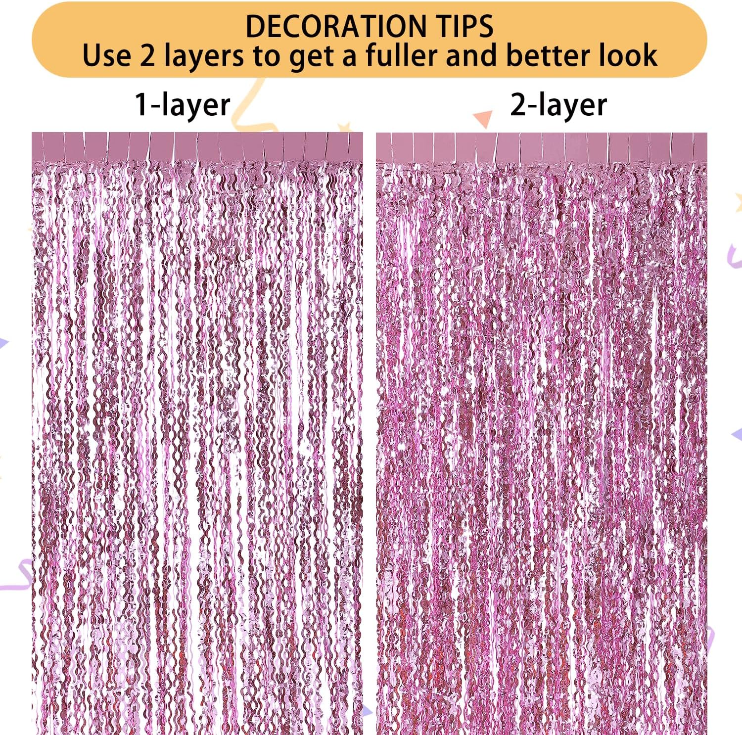 - Superior Material: The pink foil curtain is made of aluminium foil,designed to be lightweight and easy to hang, resistant to wear and tear,The foil tinsel strands reflect light beautifully, creating a mesmerizing visual effect