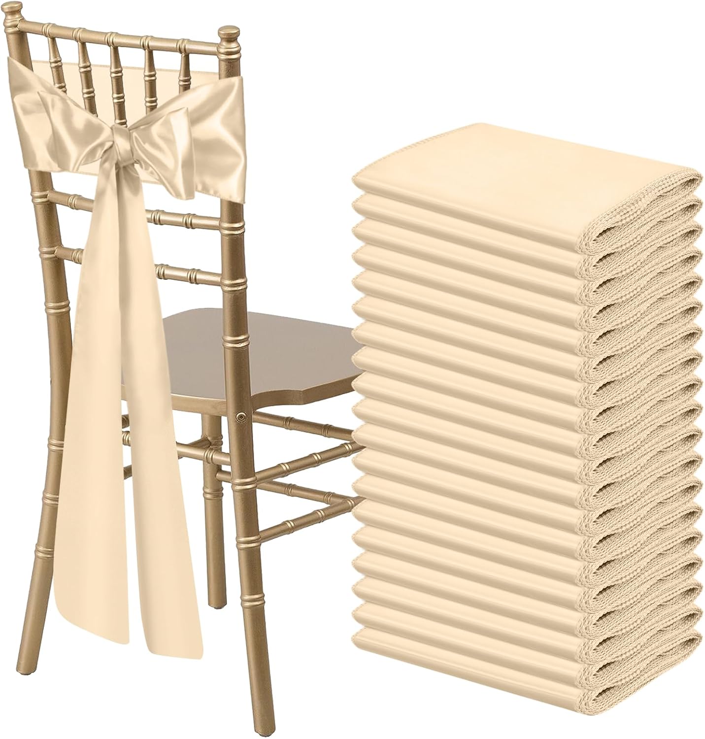 50 PCS Satin Chair Sashes Bows Universal Chair Ribbon Ties Back Sash for Wedding Party Reception Events Banquets Hotel Event Chair Cover Decoration (Champagne 7x108 inch)
