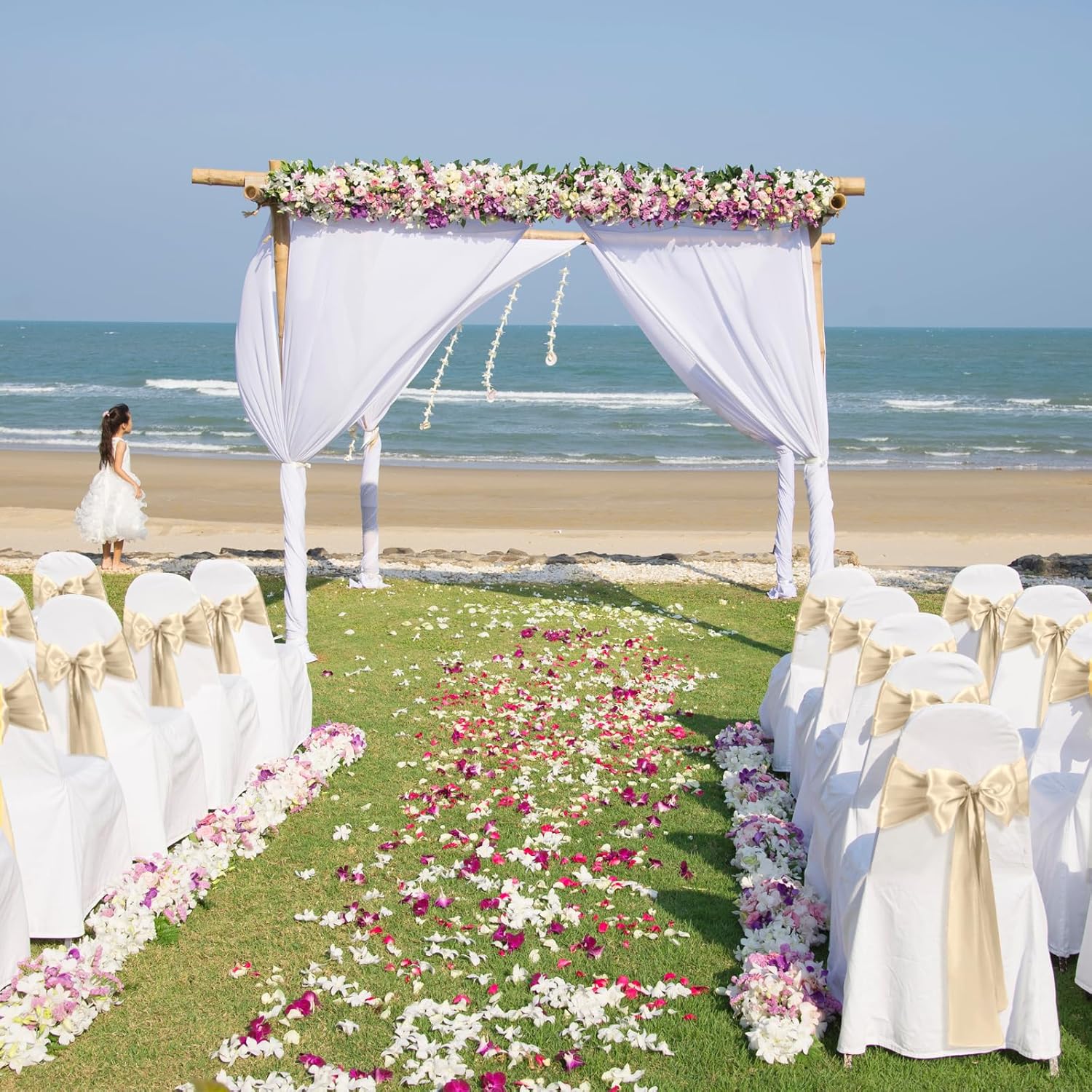 - Size & Package:You will get 50 pieces gold satin chair sashes, and the size is about 108" x7" or 275cm(l) x 17cm(w). These chair ties adopt flating packing, please to tie the bow by yourself. Each package includes chair sashes only, no chair covers