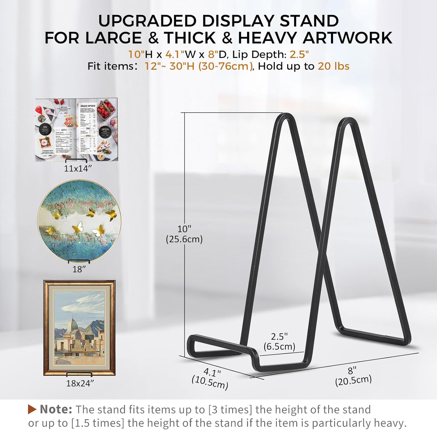 - Super High Quality - The display easel stand is made of sturdy and thick iron wire material for long-lasting use, anti-aging and not easy to deform. This table top easel stand can safely hold a variety of large items, never worry that your collectibles and artworks will fall down or bend backward.