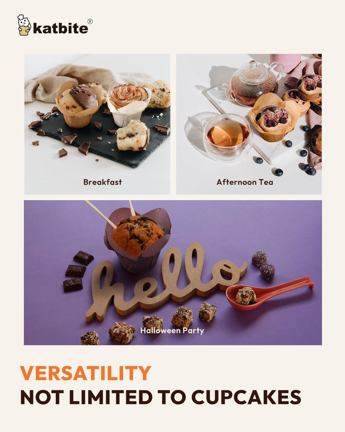 Lotus Tulip Cupcake Liners 200pcs - Katbite Premium Parchment Baking Cups, Non-Stick & Heat-Resistant, Perfect for Parties, Weddings, Birthdays, Christmas, Baby Showers
